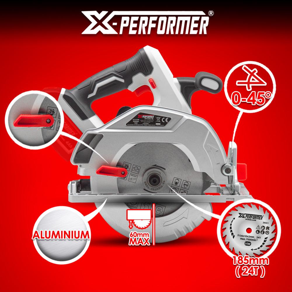 Scie circulaire sans fil X-Performer 20V - 185 mm avec batterie 4Ah et chargeur 2H
