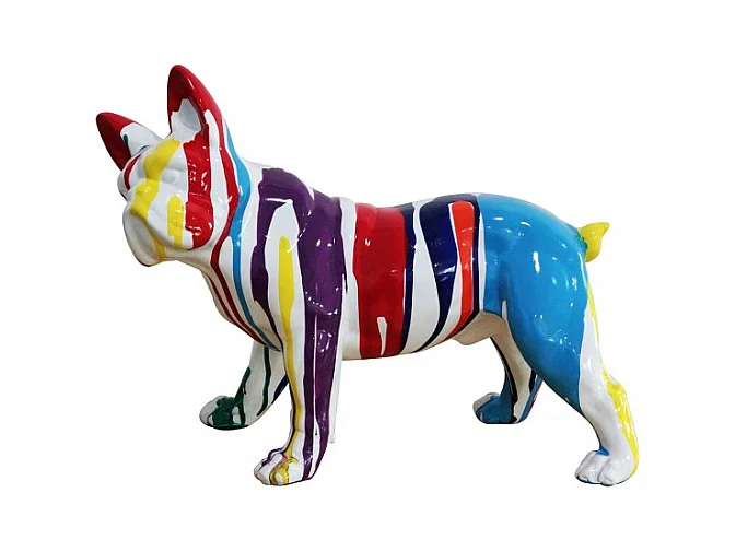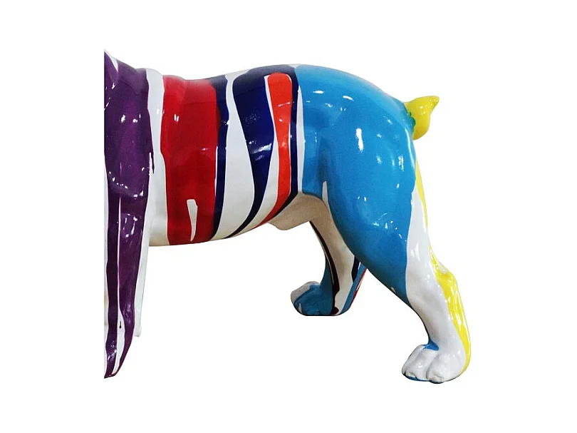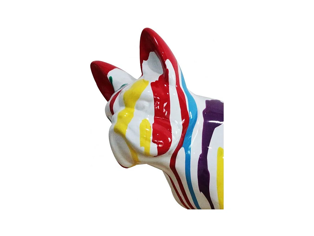 Sculpture chien bulldog blanc peinture multicolore H. 32 cm - MEDOR