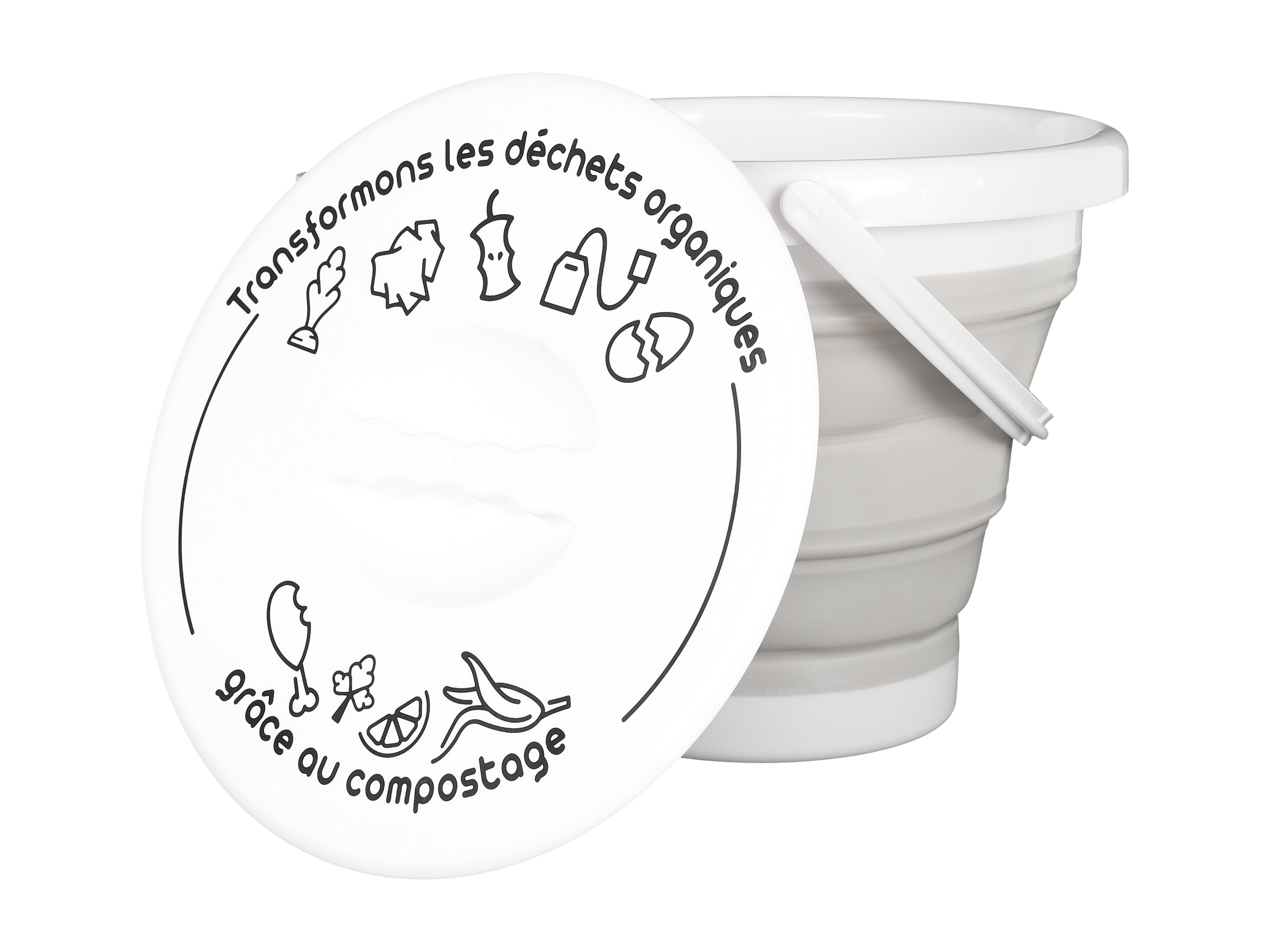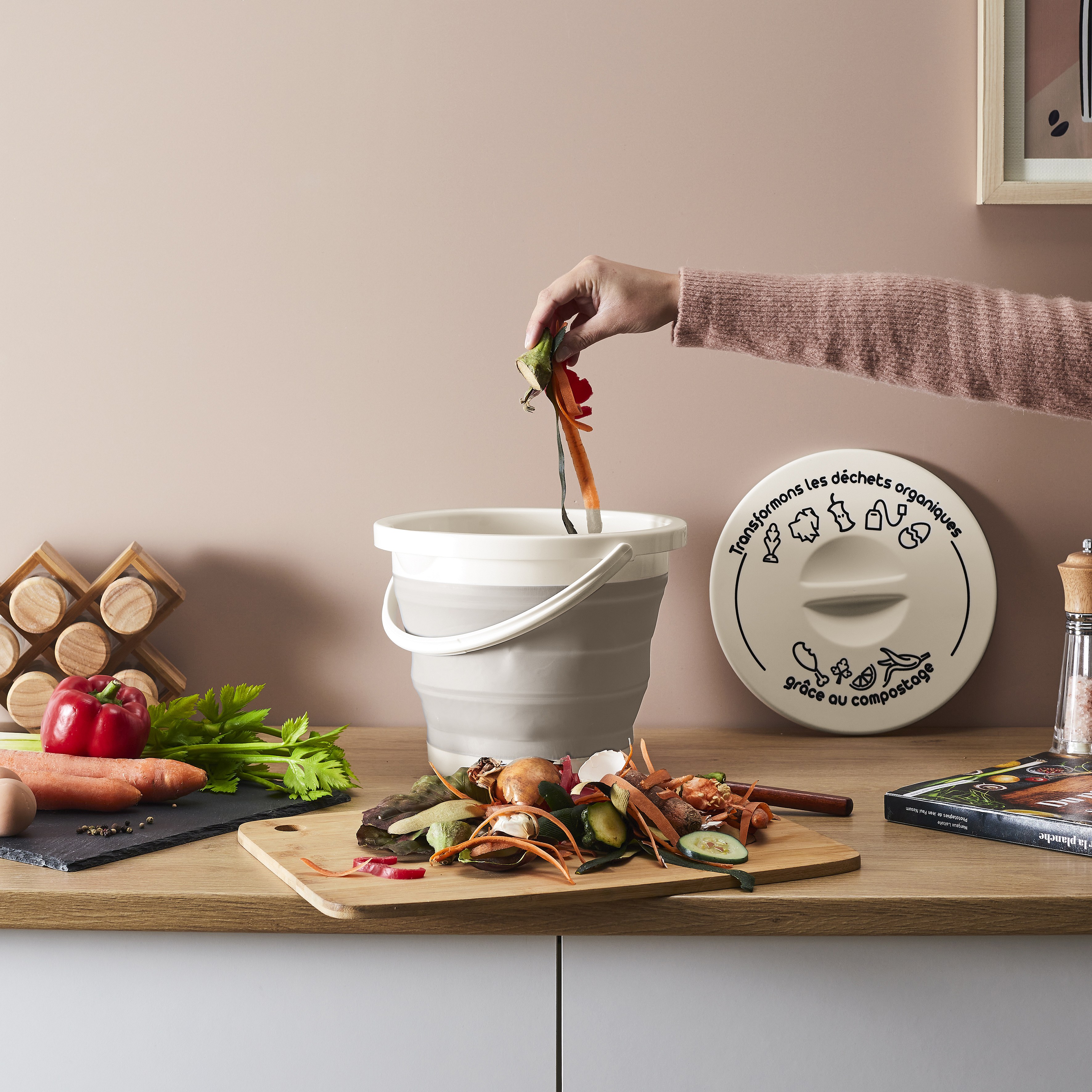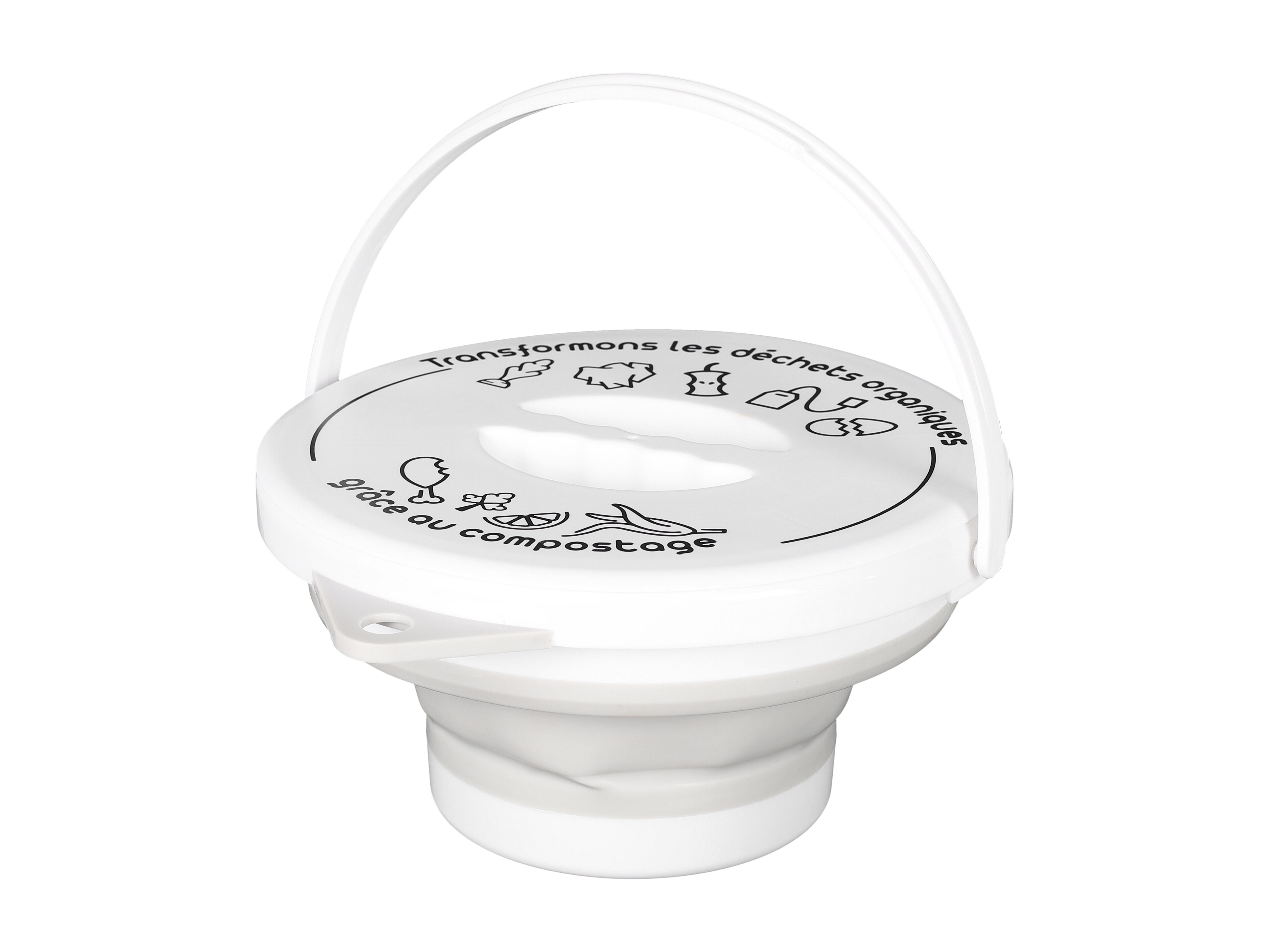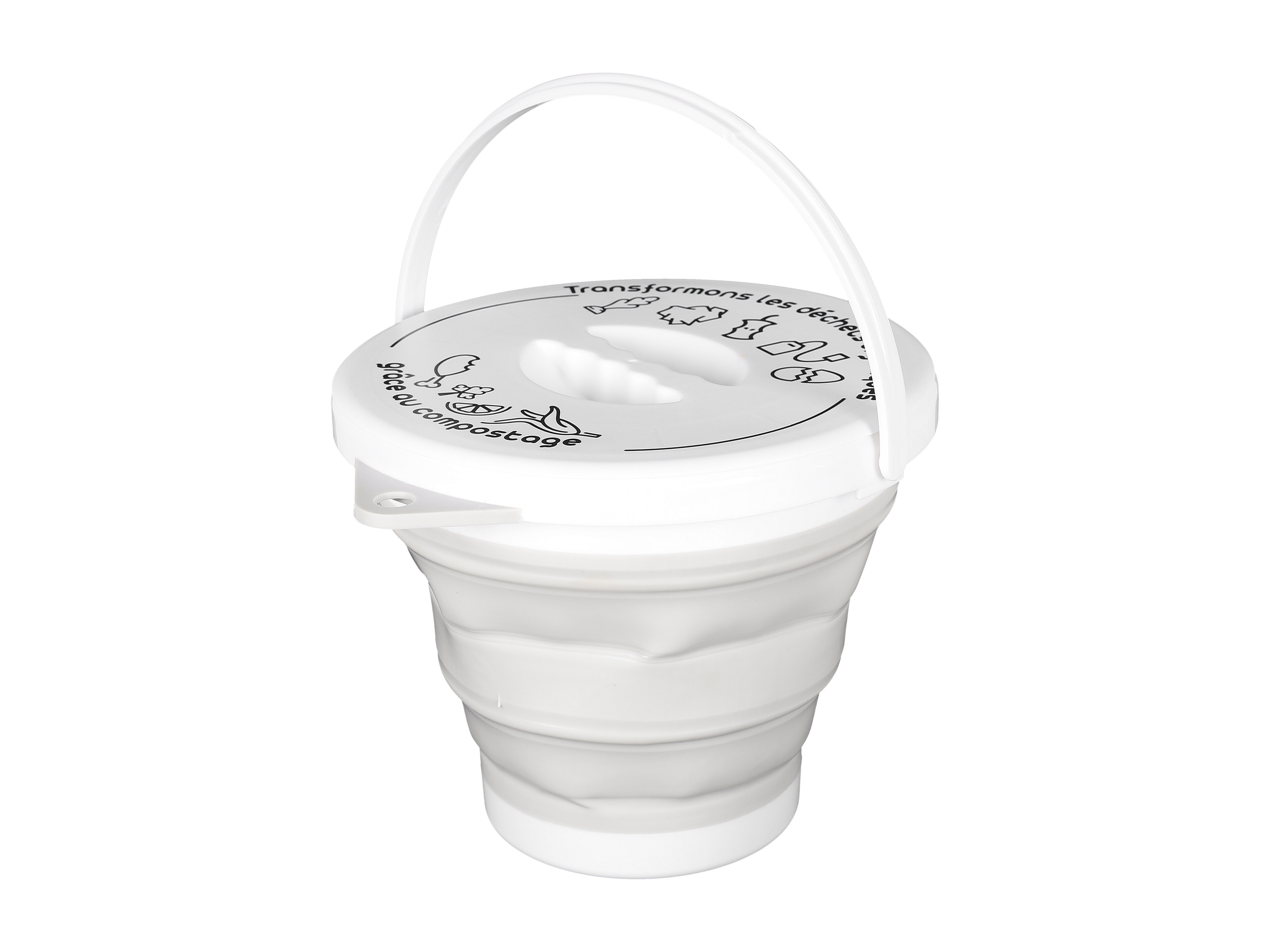 Seau A Compost Pliable Avec Anse Et Couvercle Gris, Blanc