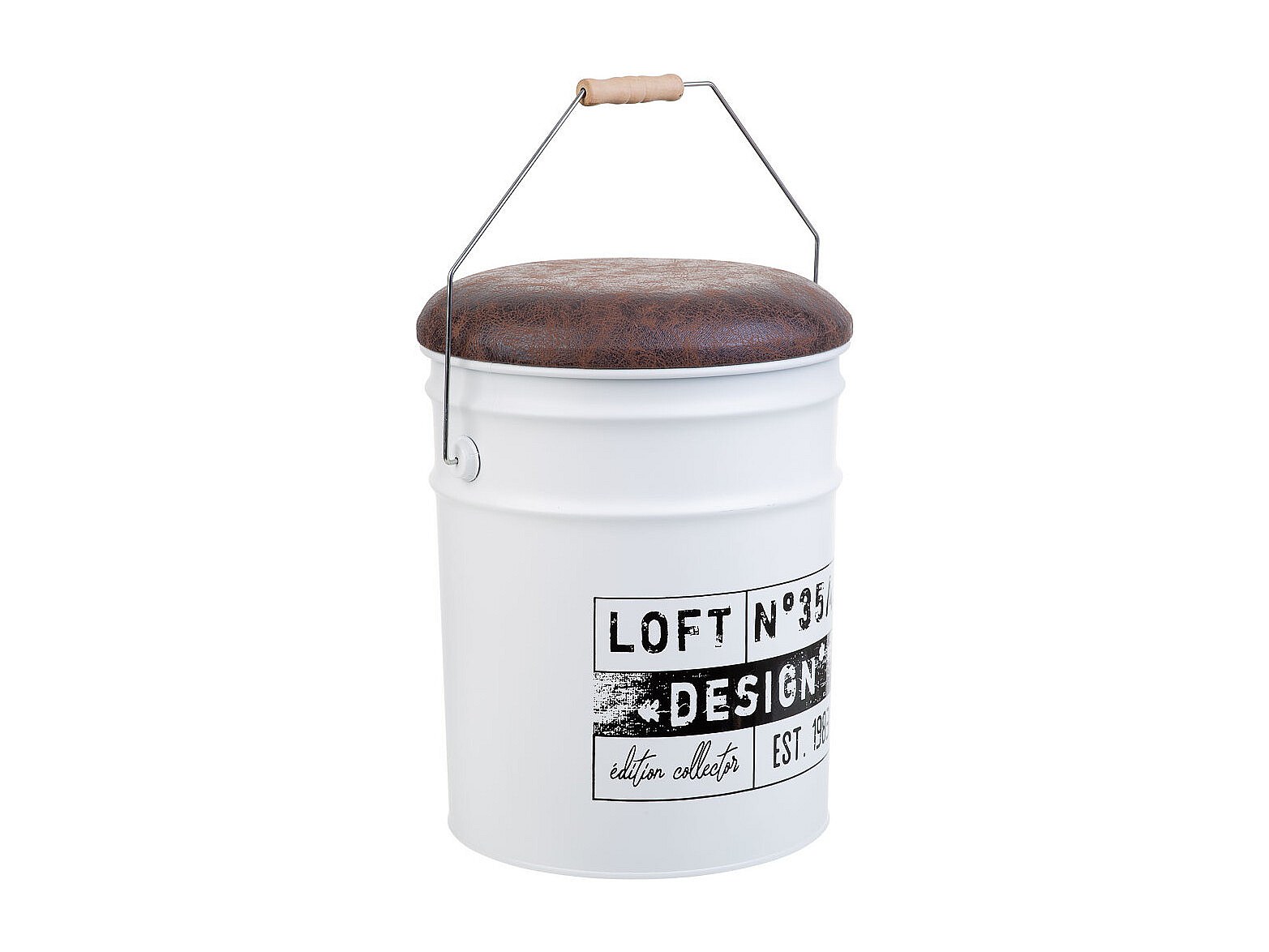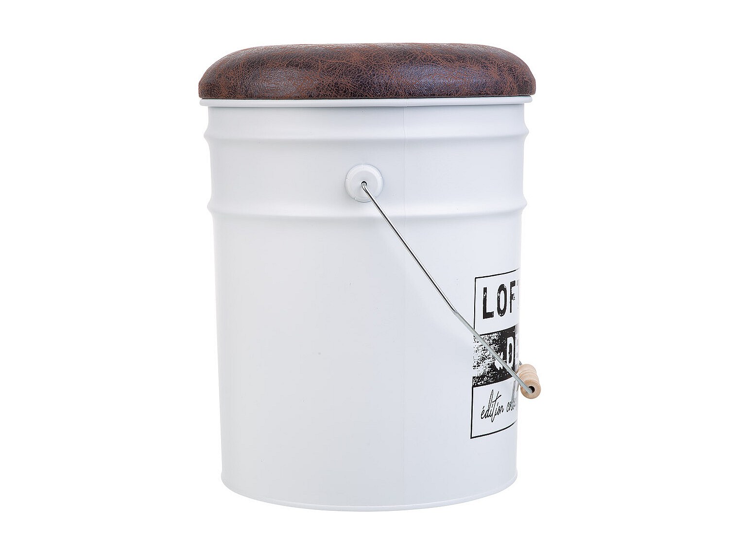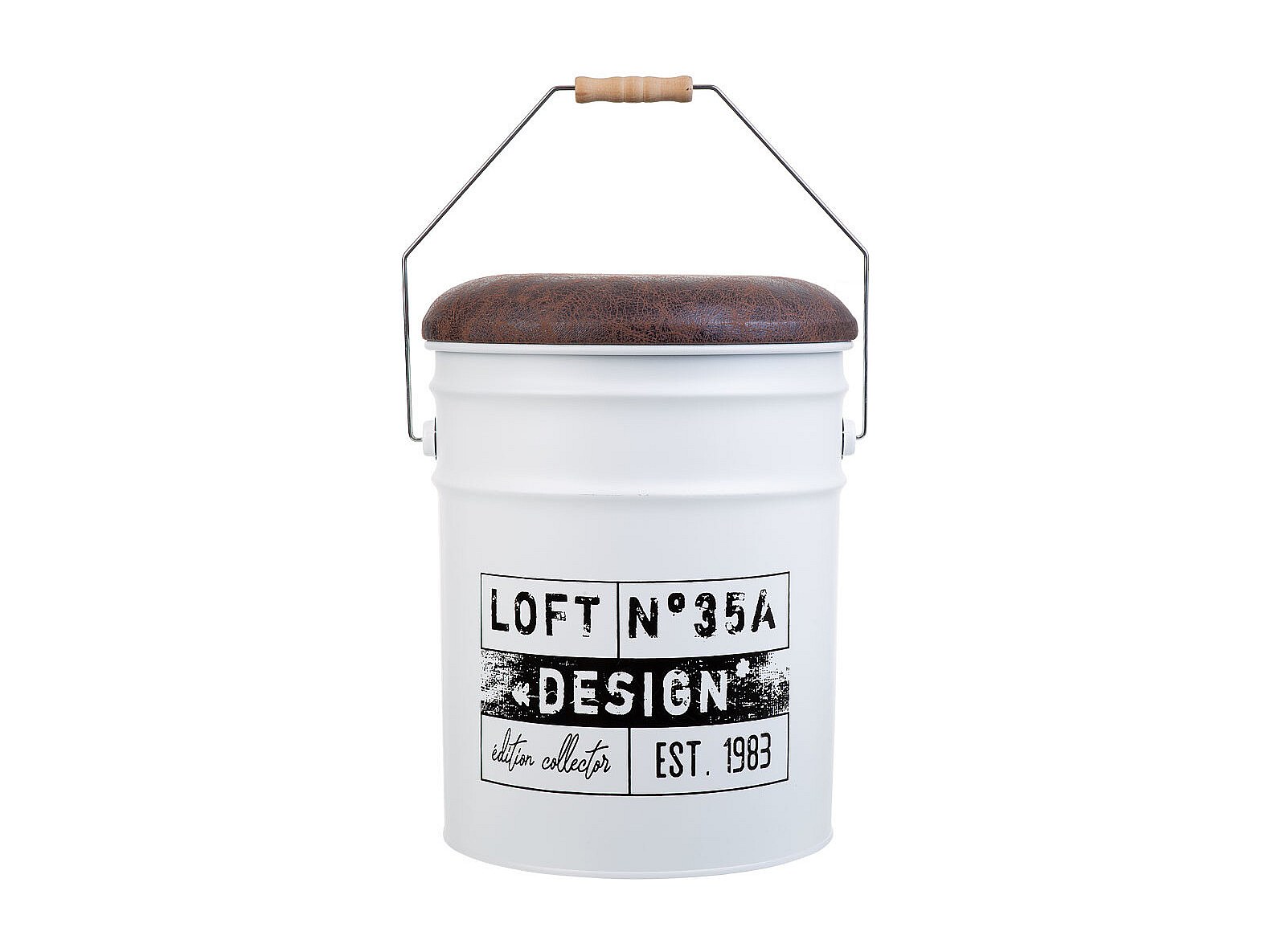 Seau en métal, couvercle rembourré et anse en métal imprimé blanc D31x35/40h cm
