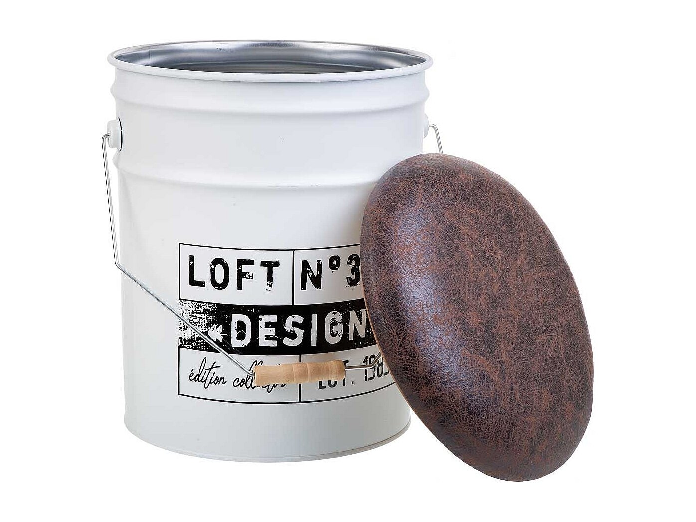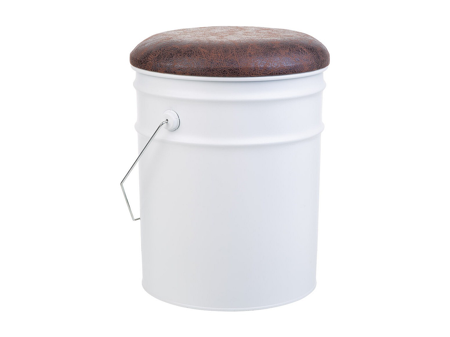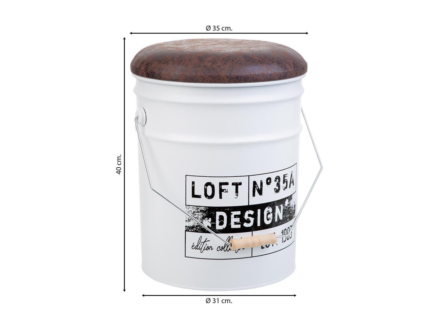 Seau en métal, couvercle rembourré et anse en métal imprimé blanc D31x35/40h cm