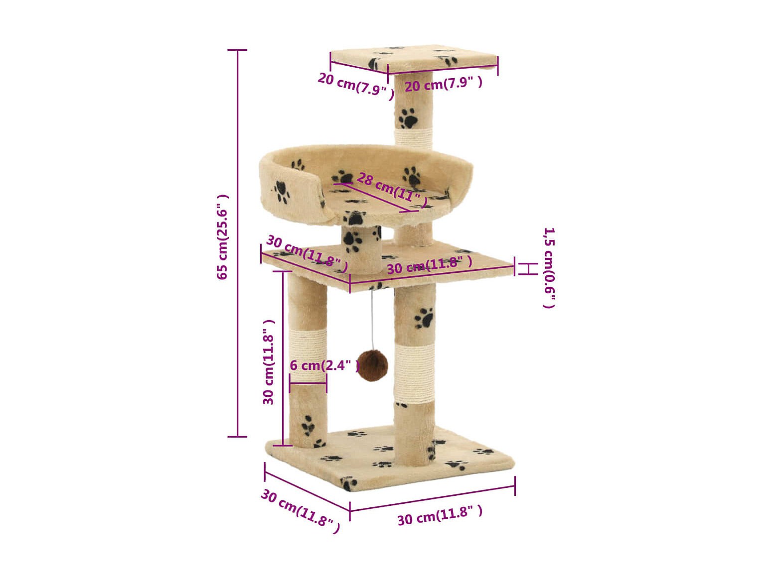 Arbre à chat et griffoirs en sisal 65 cm Beige Motif de pattes OFR87685 BonneVie Meuble