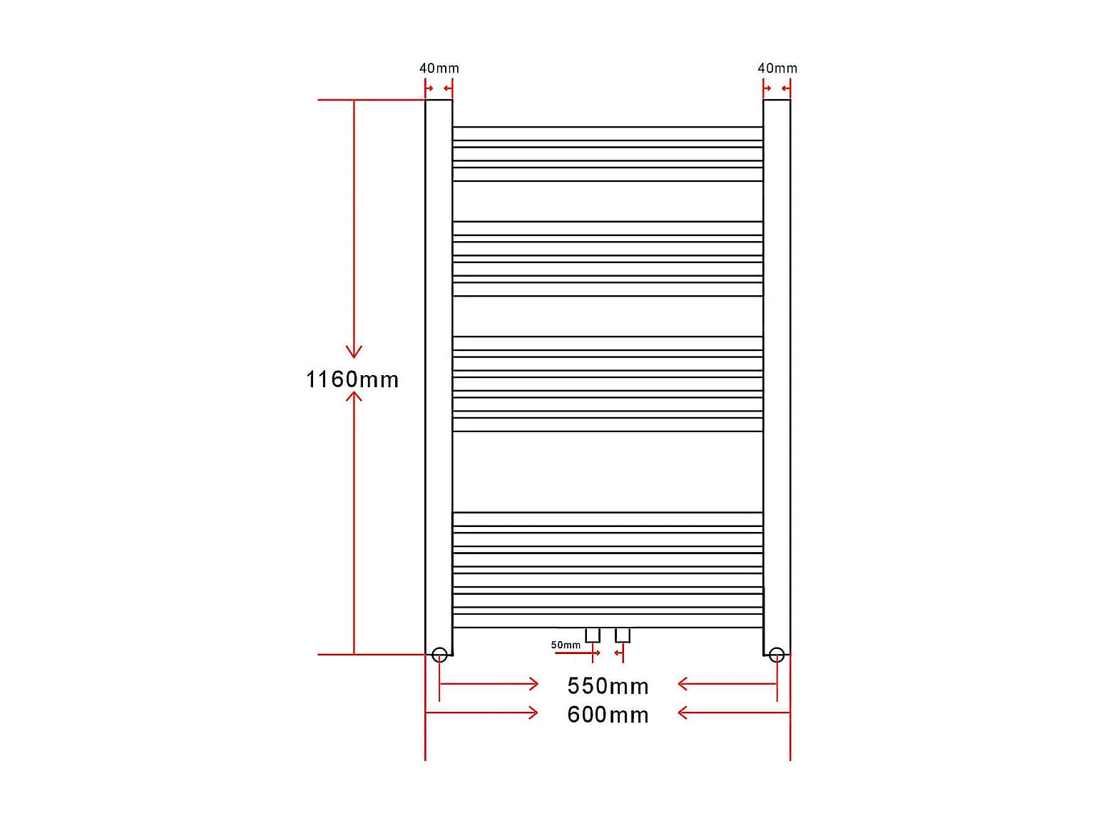 Sèche-Serviettes Chauffage Central Incurvé 600x1160mm + Connecteurs
