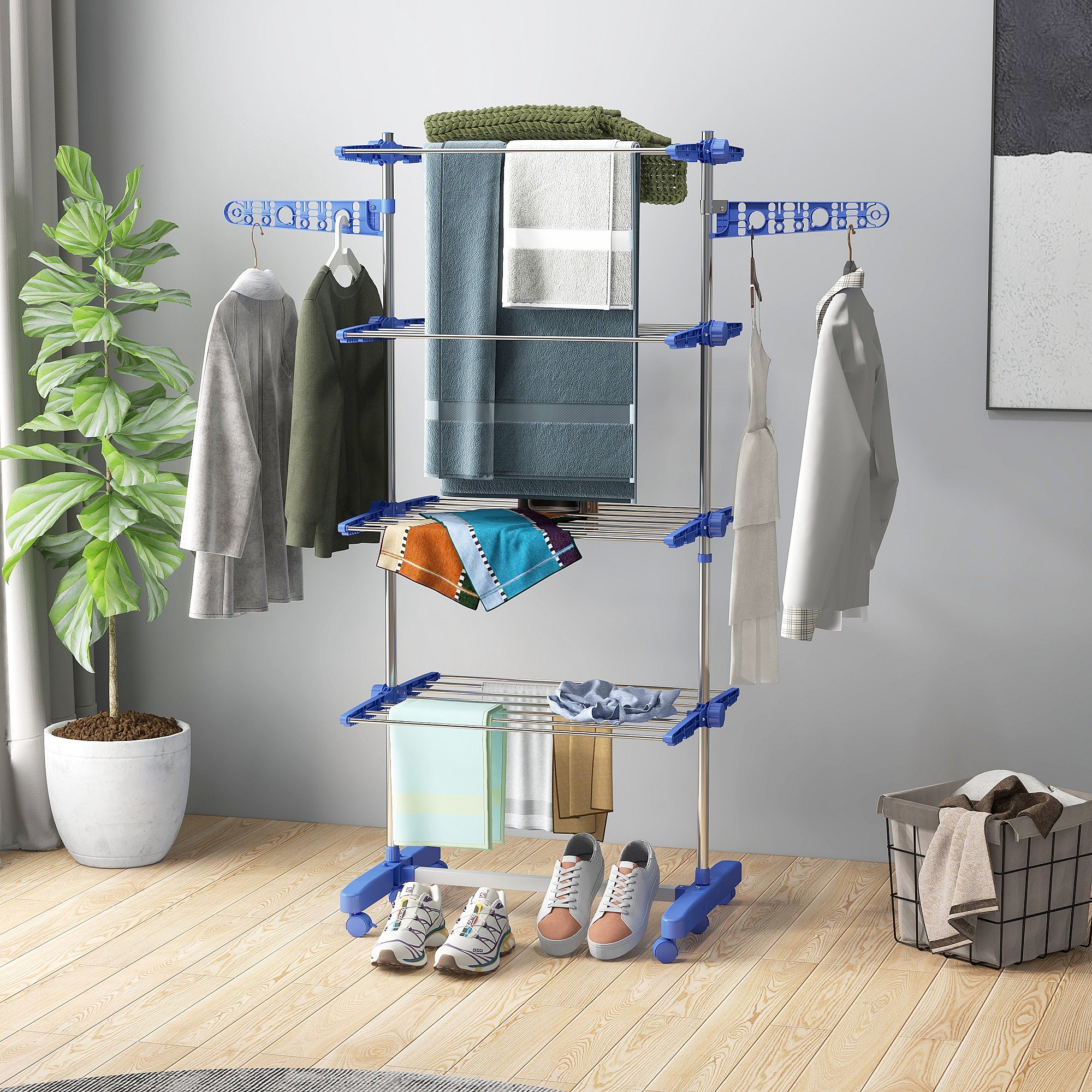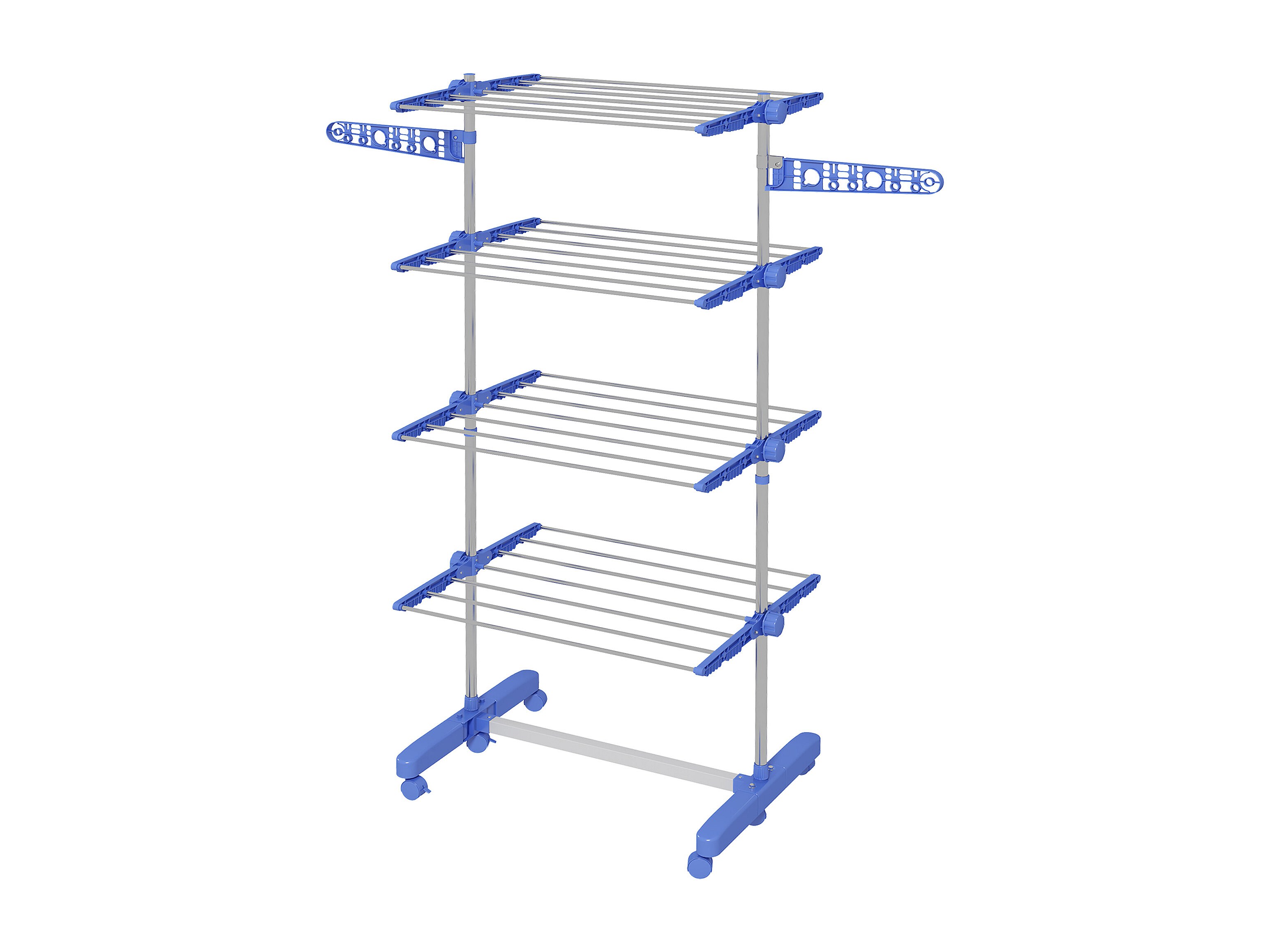 Séchoir à linge étendoir pliable ailes latérales 4 niveaux bleu
