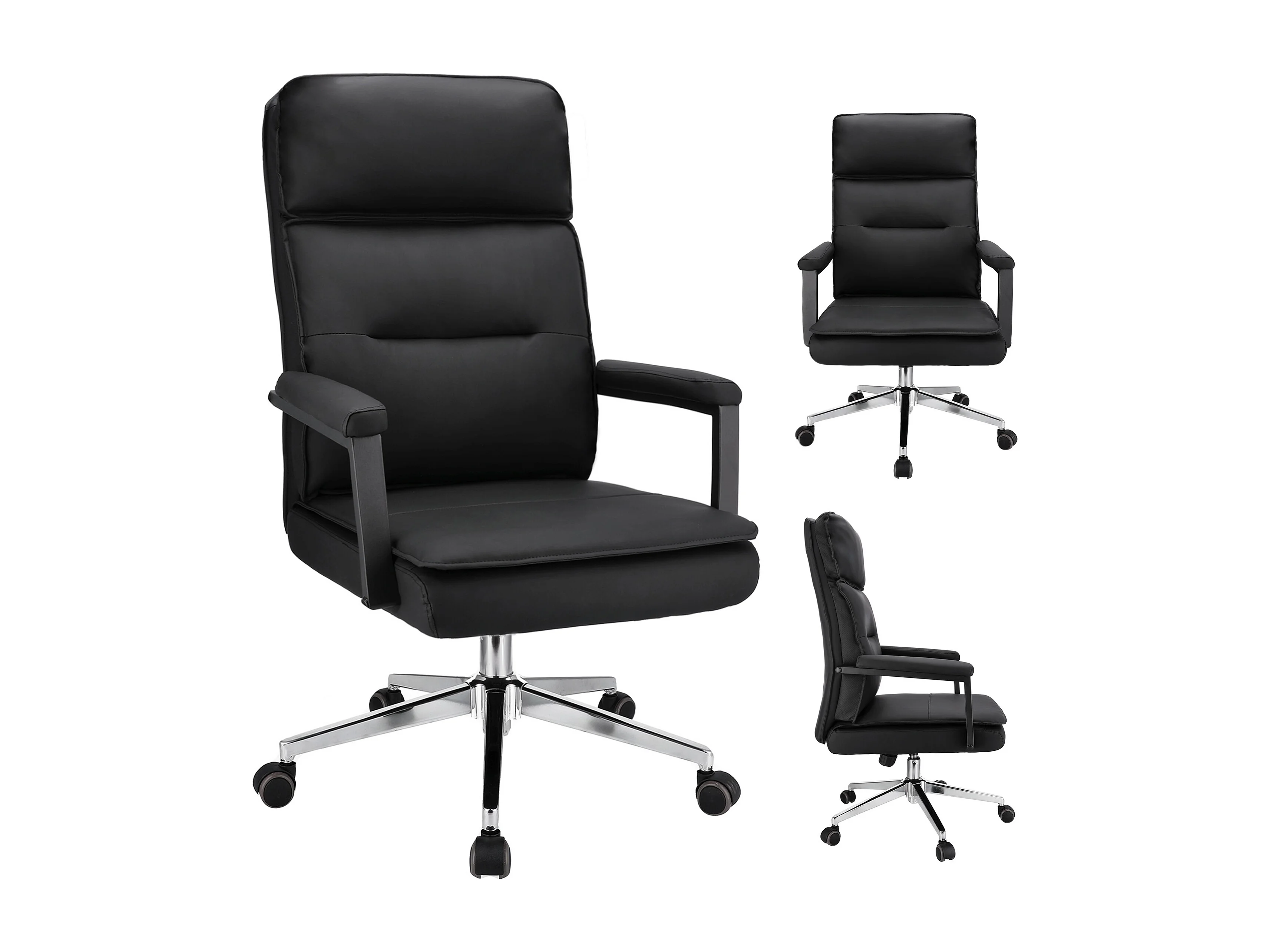 Fauteuil de bureau pivotant avec fonction bascule, simili cuir, réglable, noir (64x78x118-126cm)