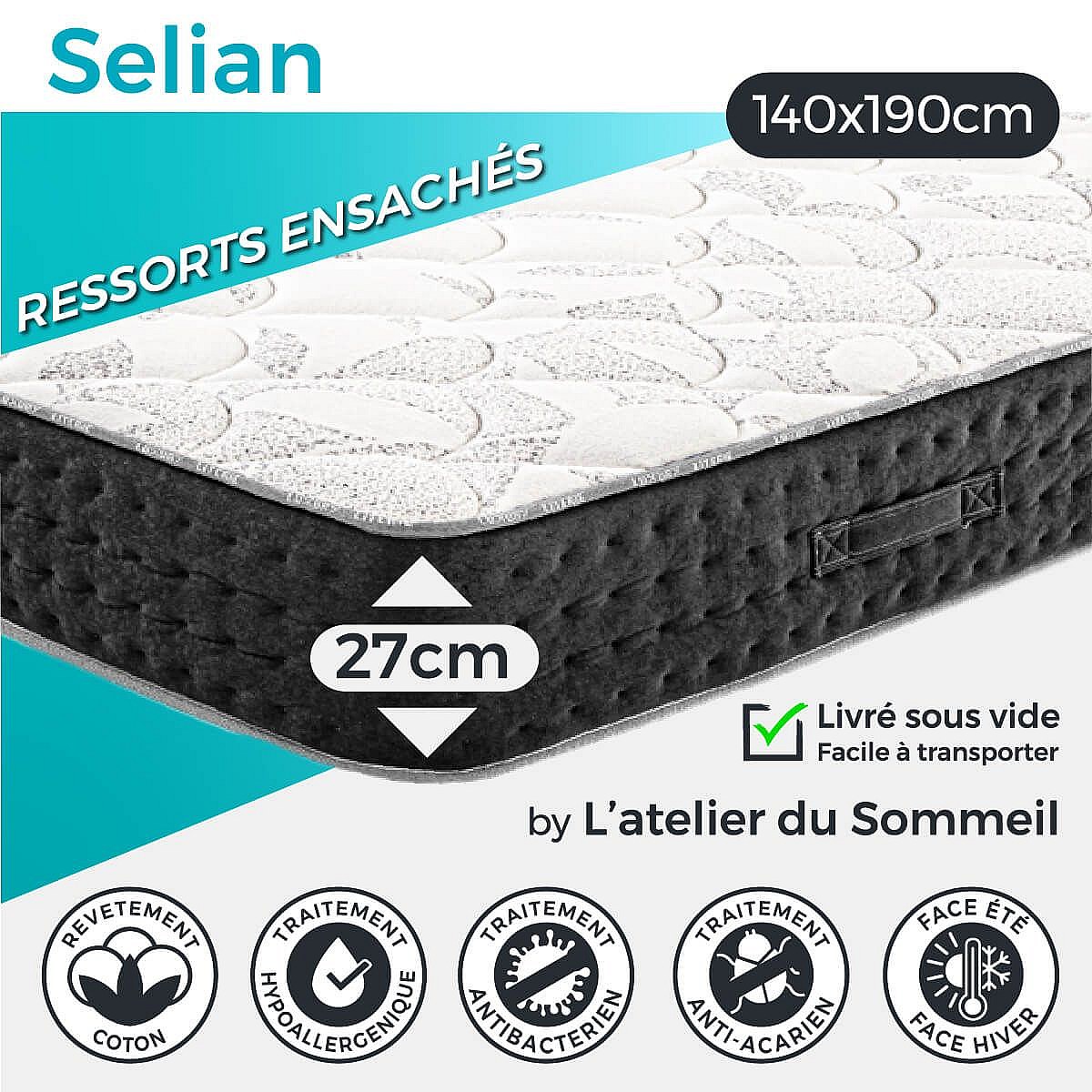 SELIAN - Ensemble Matelas Ressorts Ep.27cm + Sommier Tapissier Beige 140x190 cm