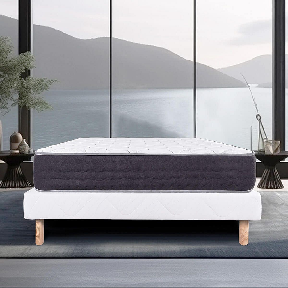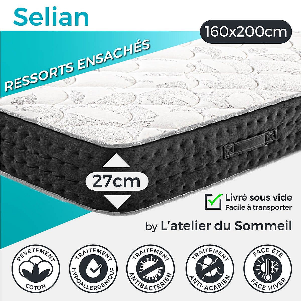 SELIAN - Ensemble Matelas Ressorts Ep.27cm + Sommier Tapissier Blanc 160x200 cm