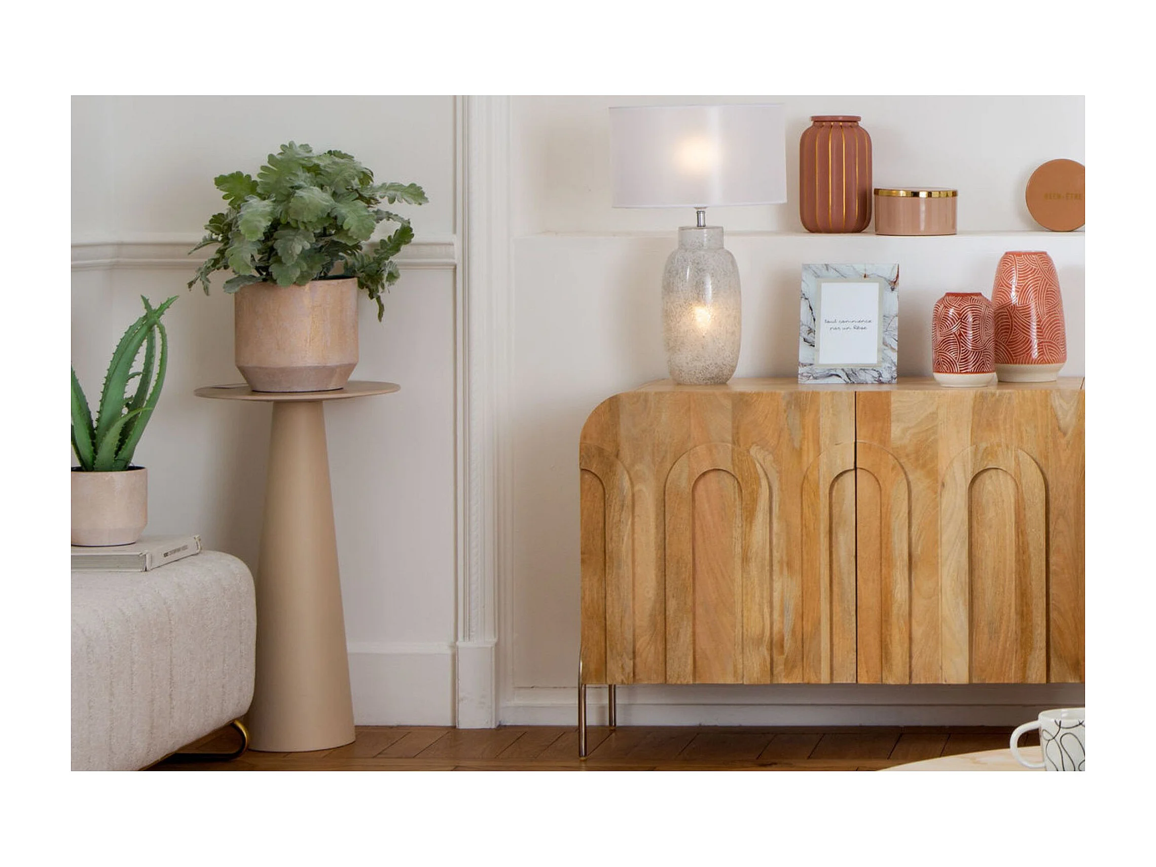 Sellette ronde en céramique et pied central beige D40 - CAMILLE