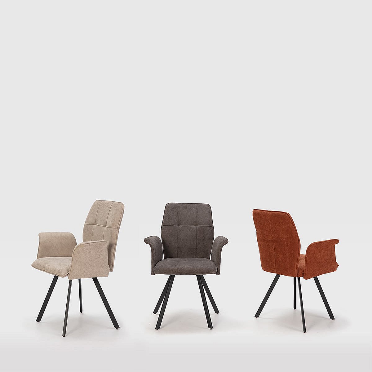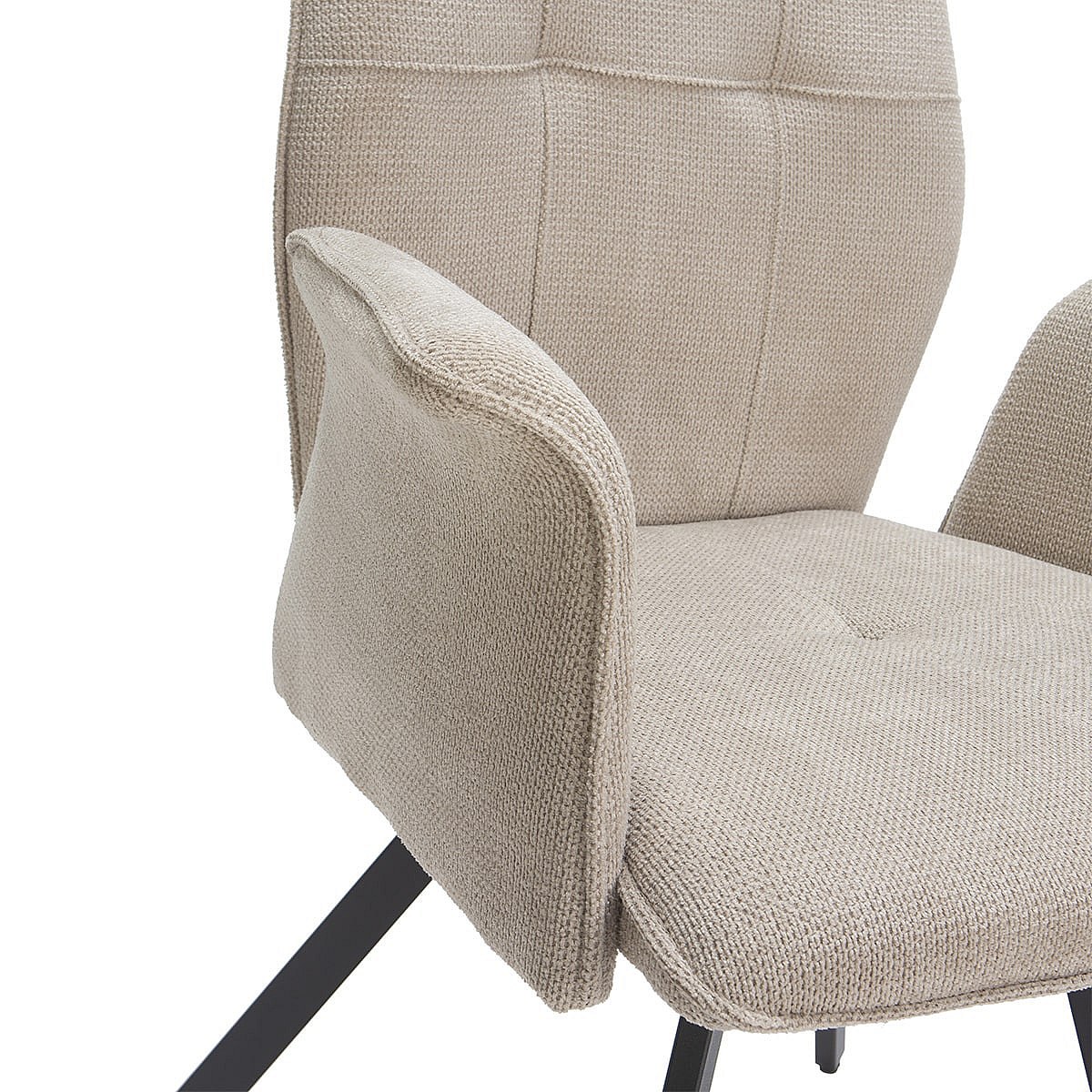 SELMA - Lot de 4 Fauteuils Tissu Beige Effet Tricoté Pieds Métal Noir