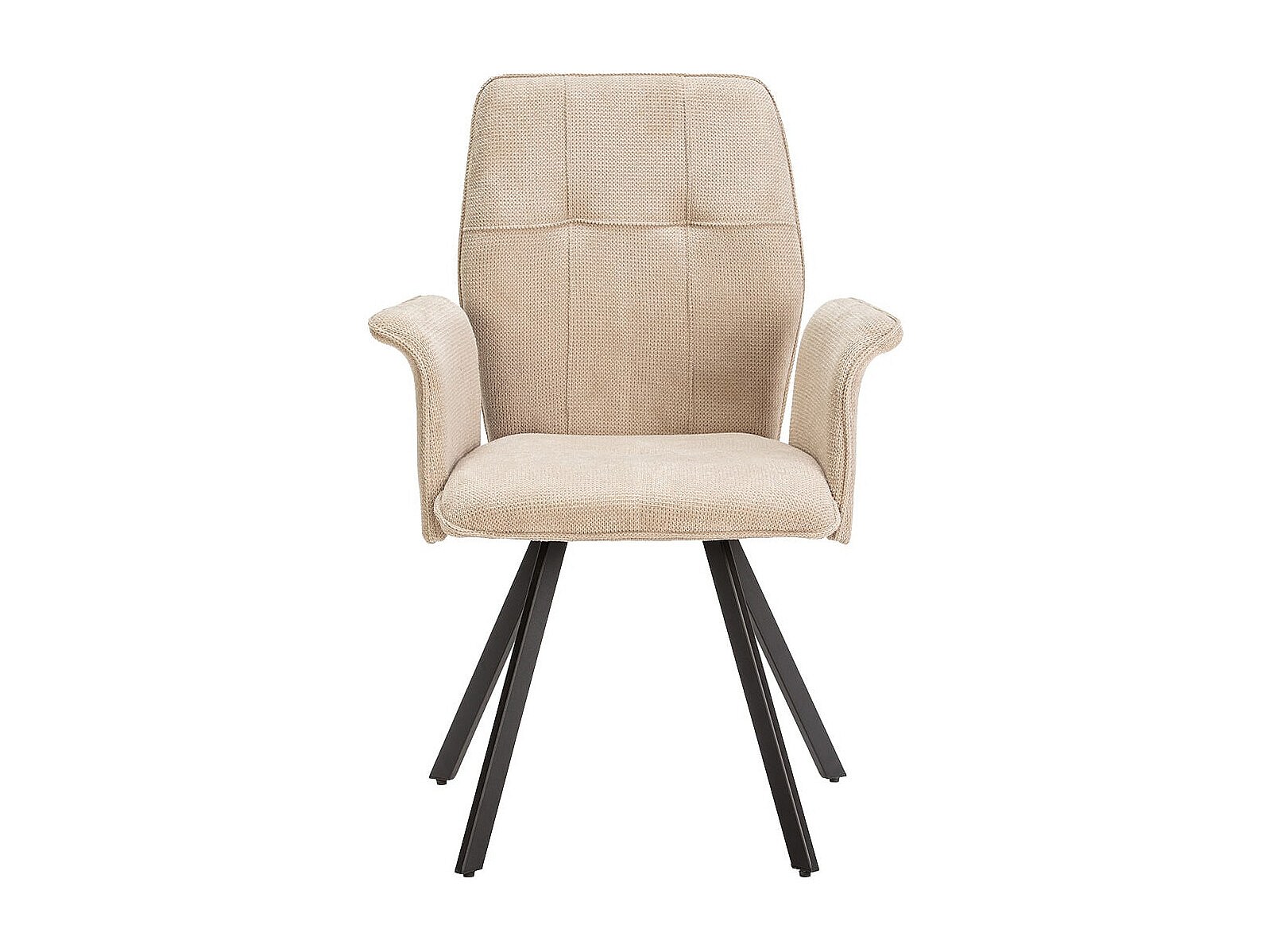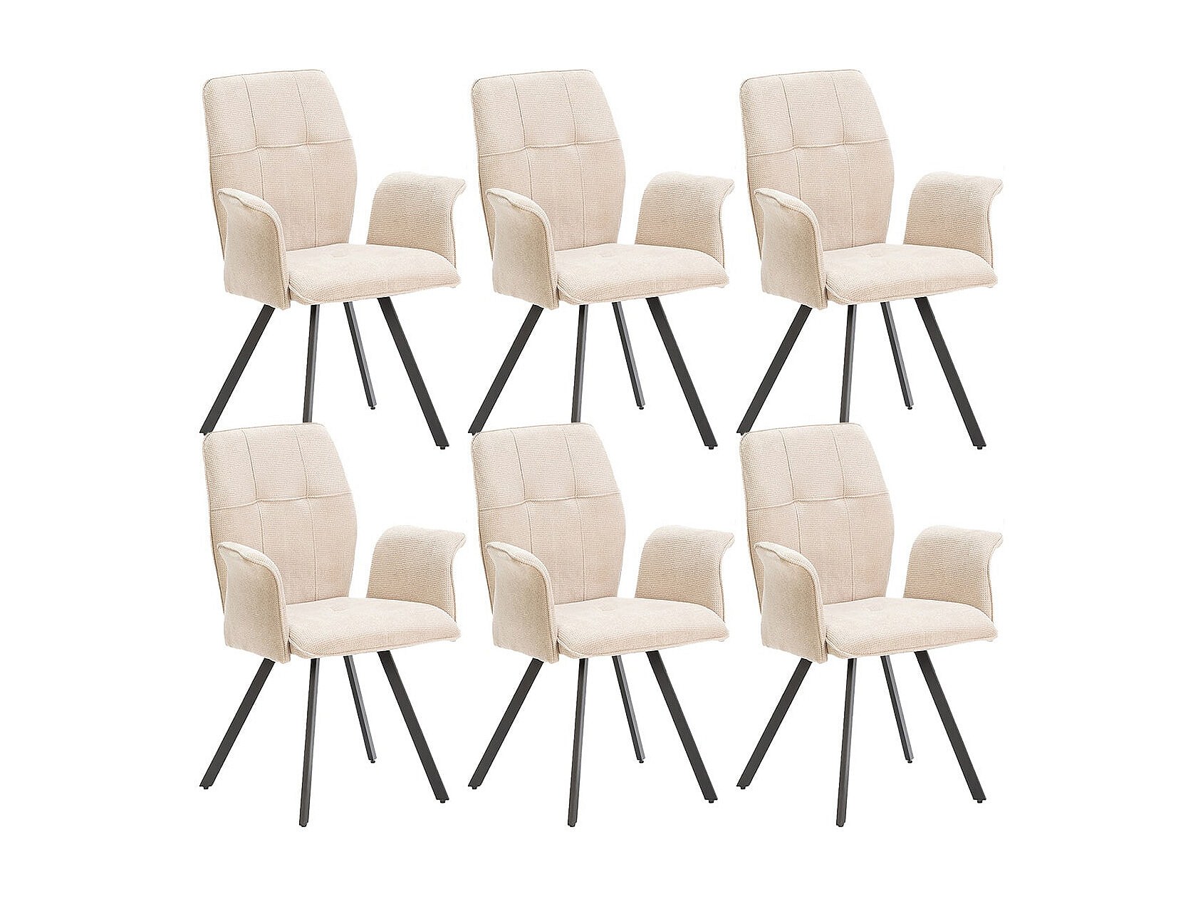SELMA - Lot de 6 Fauteuils Tissu Beige Effet Tricoté Pieds Métal Noir