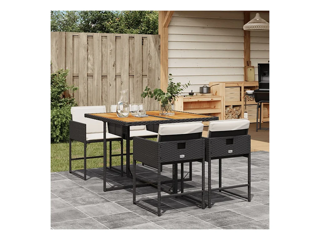 Sener Ensemble à manger de jardin coussins 5pcs Noir Résine tressée