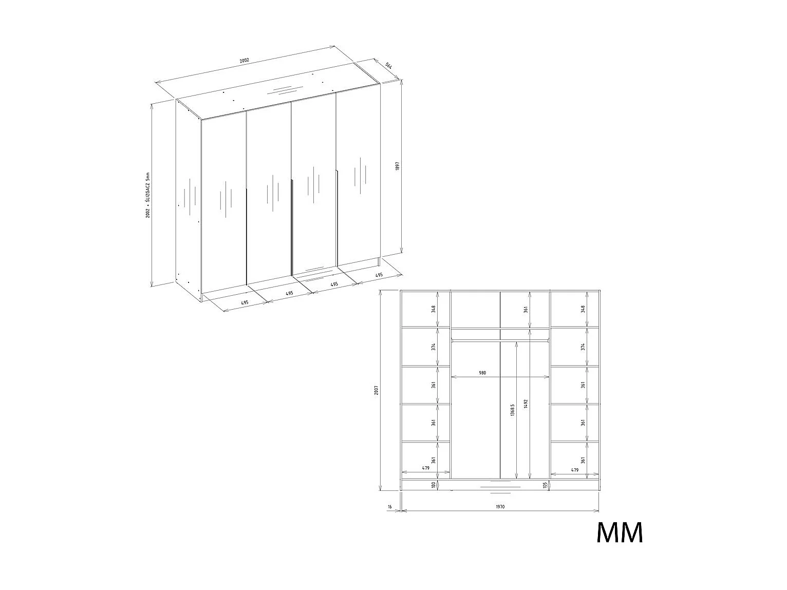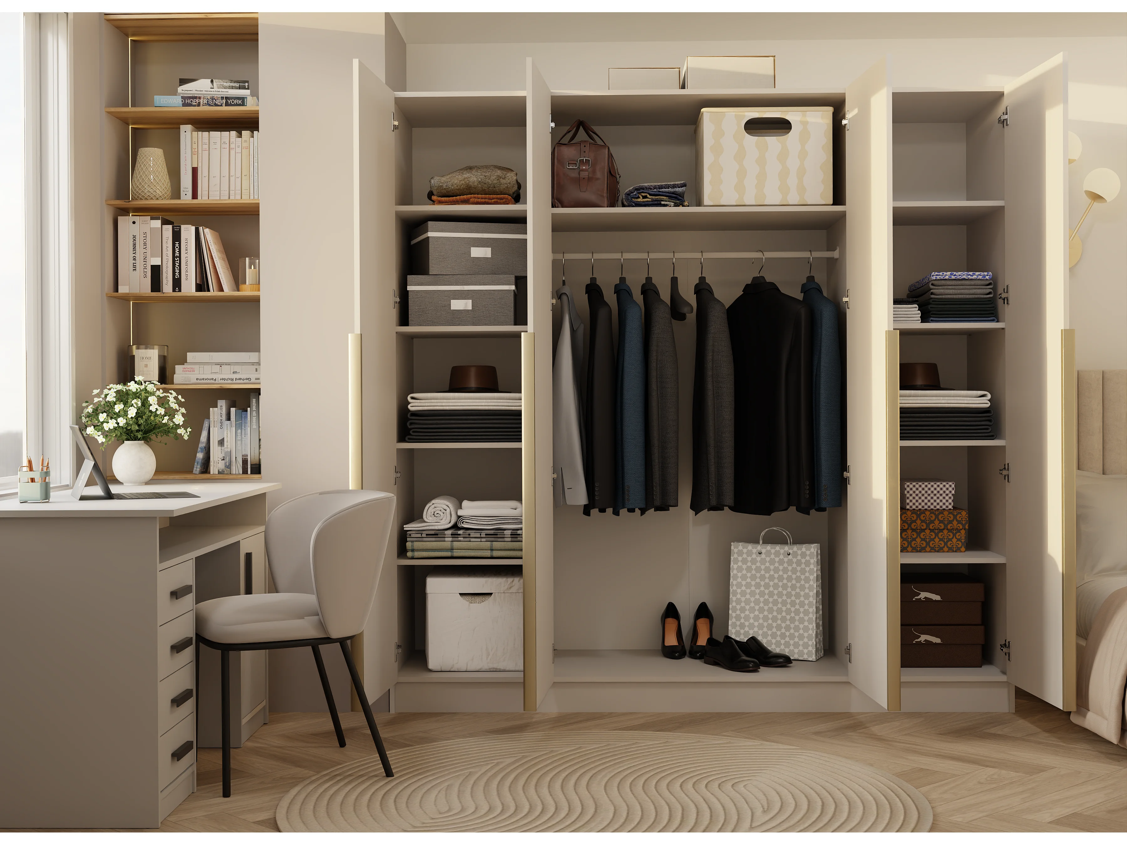 SENSO - Armoire – Beige cachemire – 4 portes – 200×200 cm – Poignées dorées – Chambre