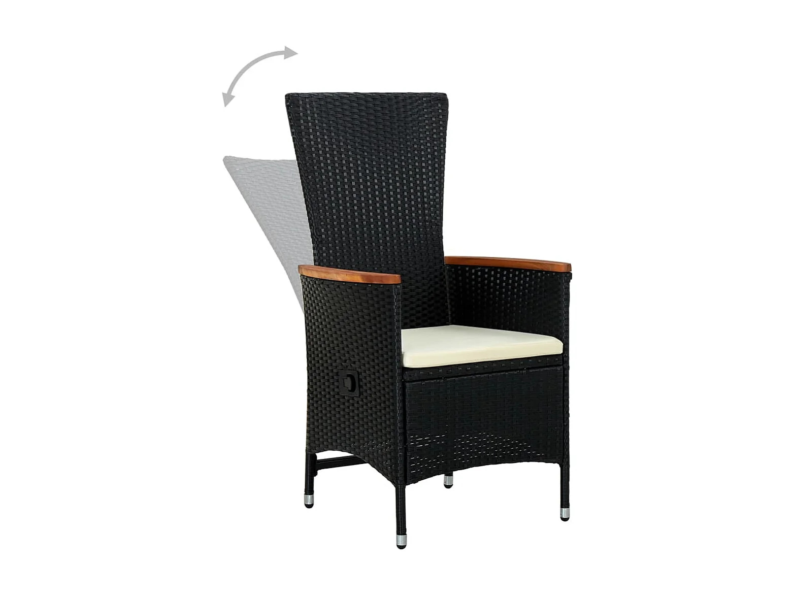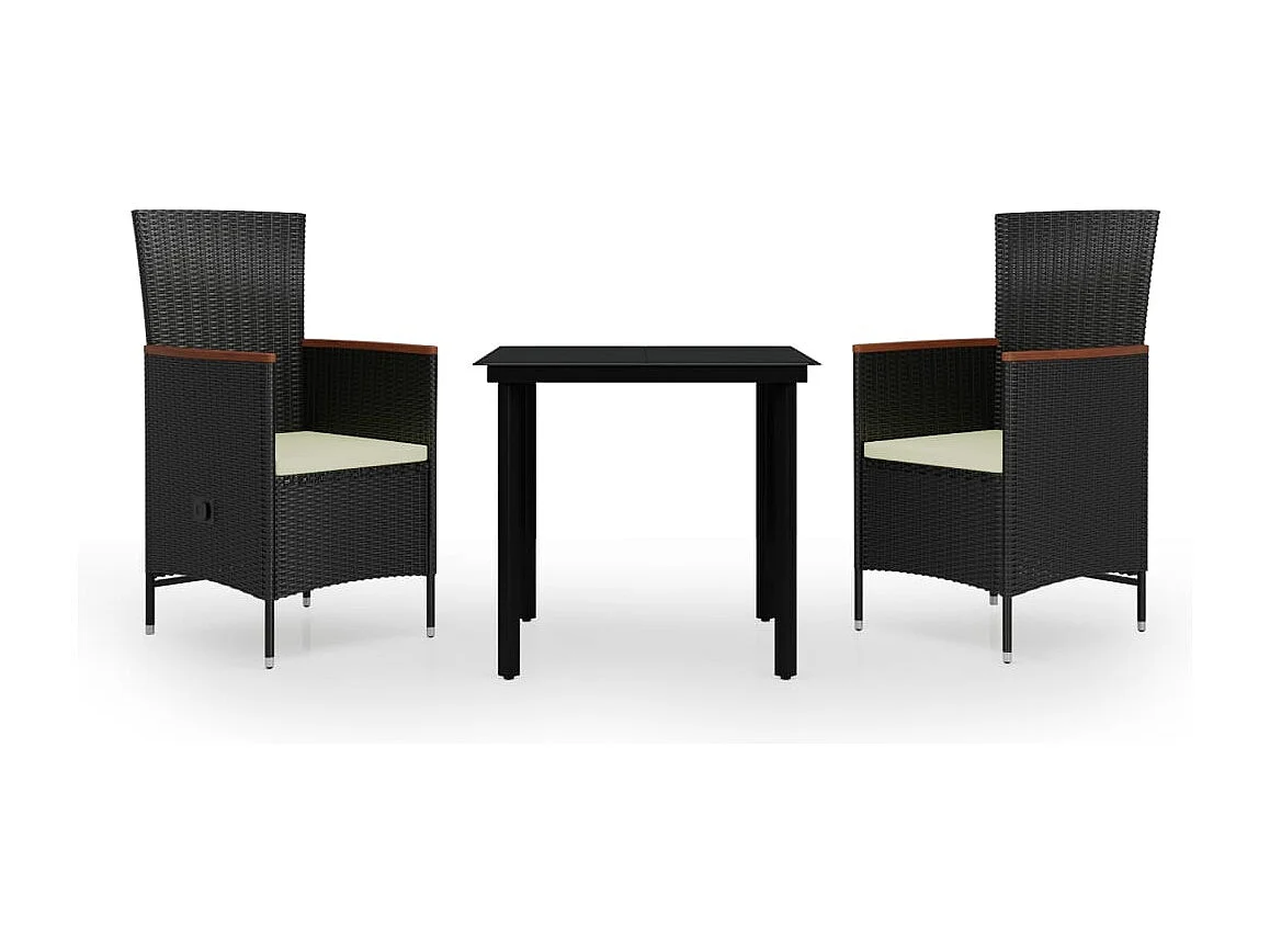 Serafino Ensemble à manger de jardin avec coussins 3 pcs noir