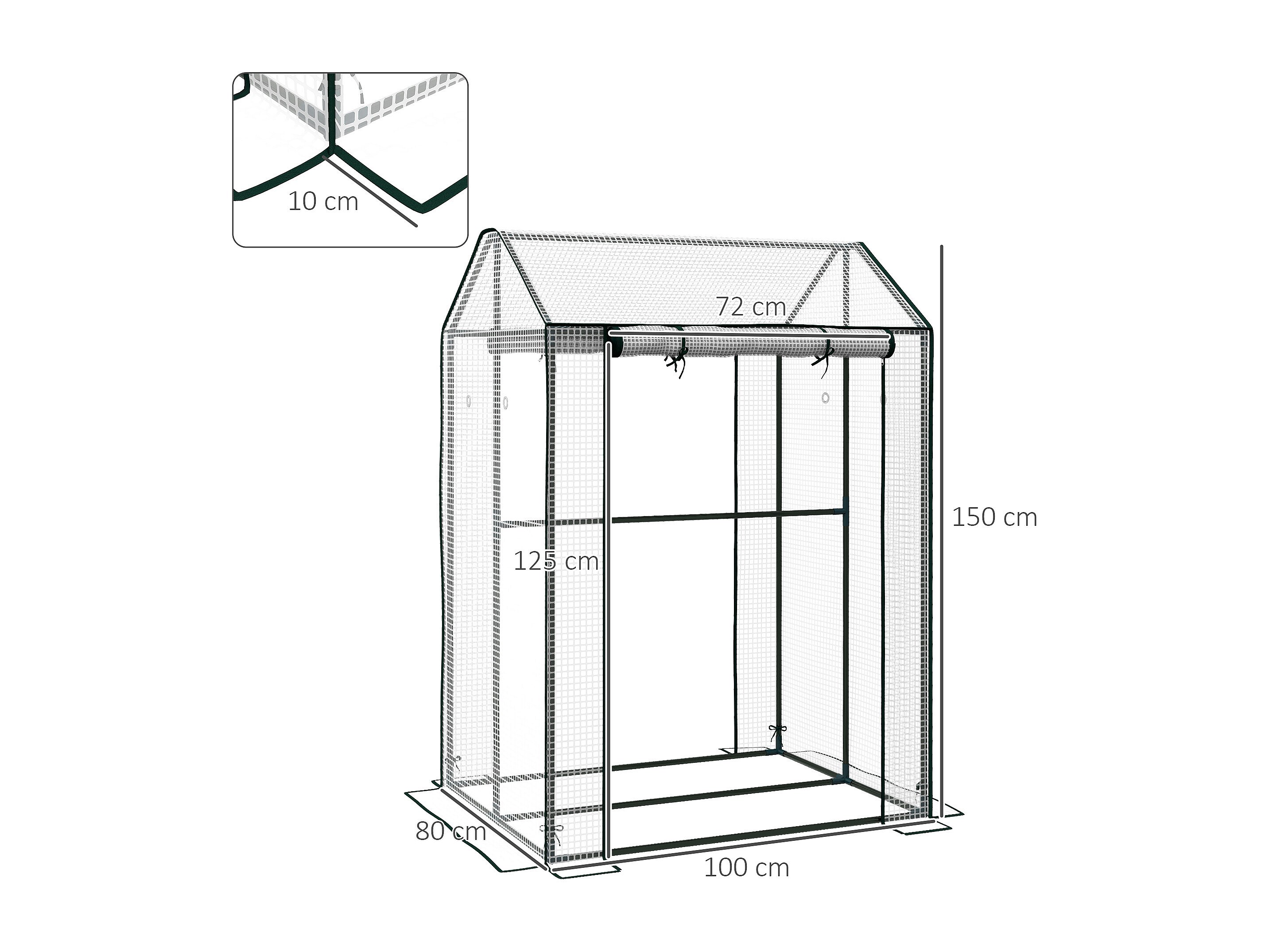 Serre de jardin 0,8 m² - 2 espaces, 2 portes enroulables - acier PE transparent