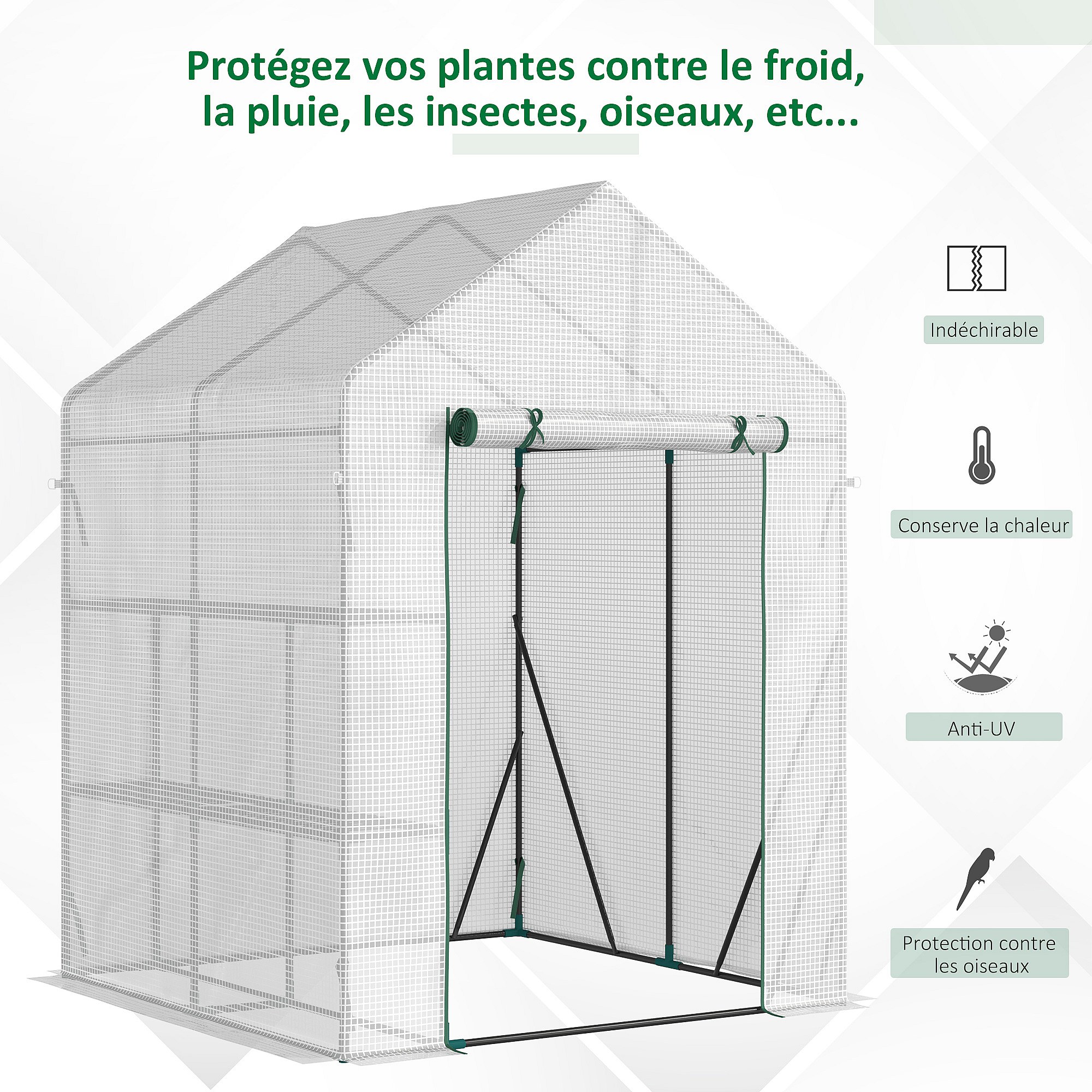 Serre de jardin 2 m² serre à tomates 2 portes acier PE blanc
