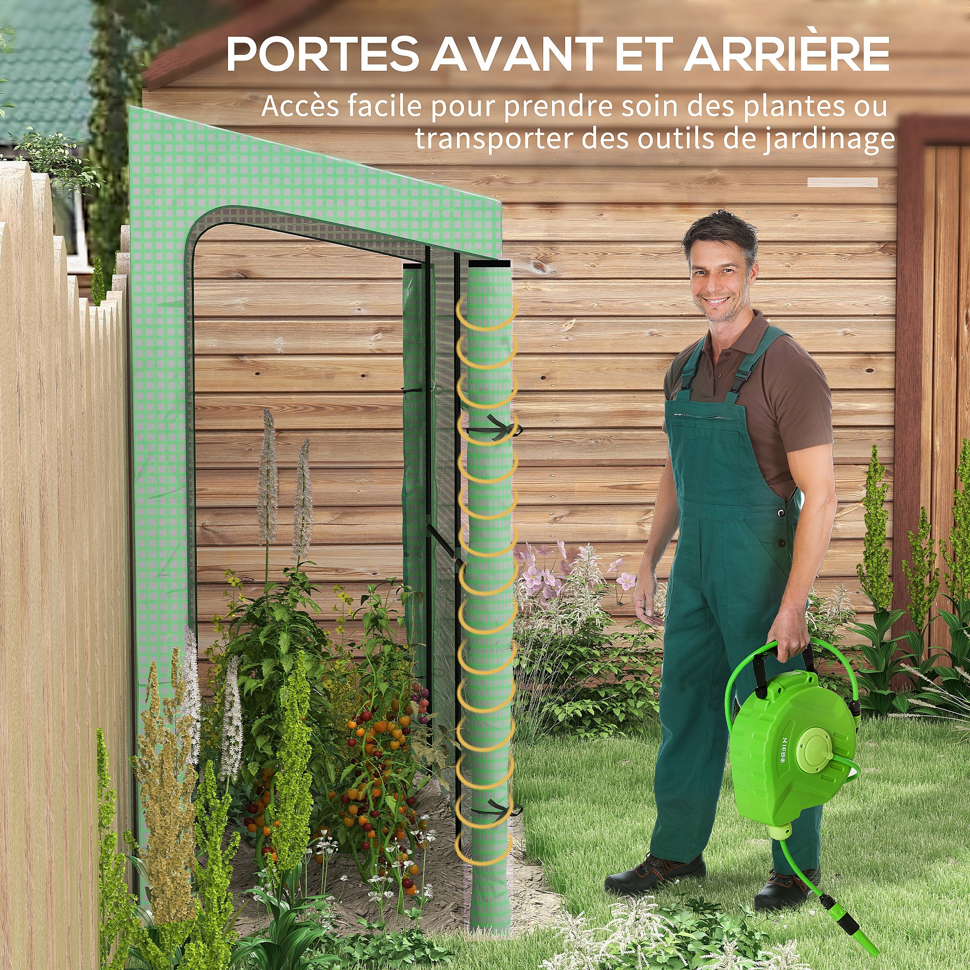 Serre de jardin adossée serre adossée dim. 2L x 0,8l x 2H m 2 portes zippées fenêtre acier PE haute densité vert