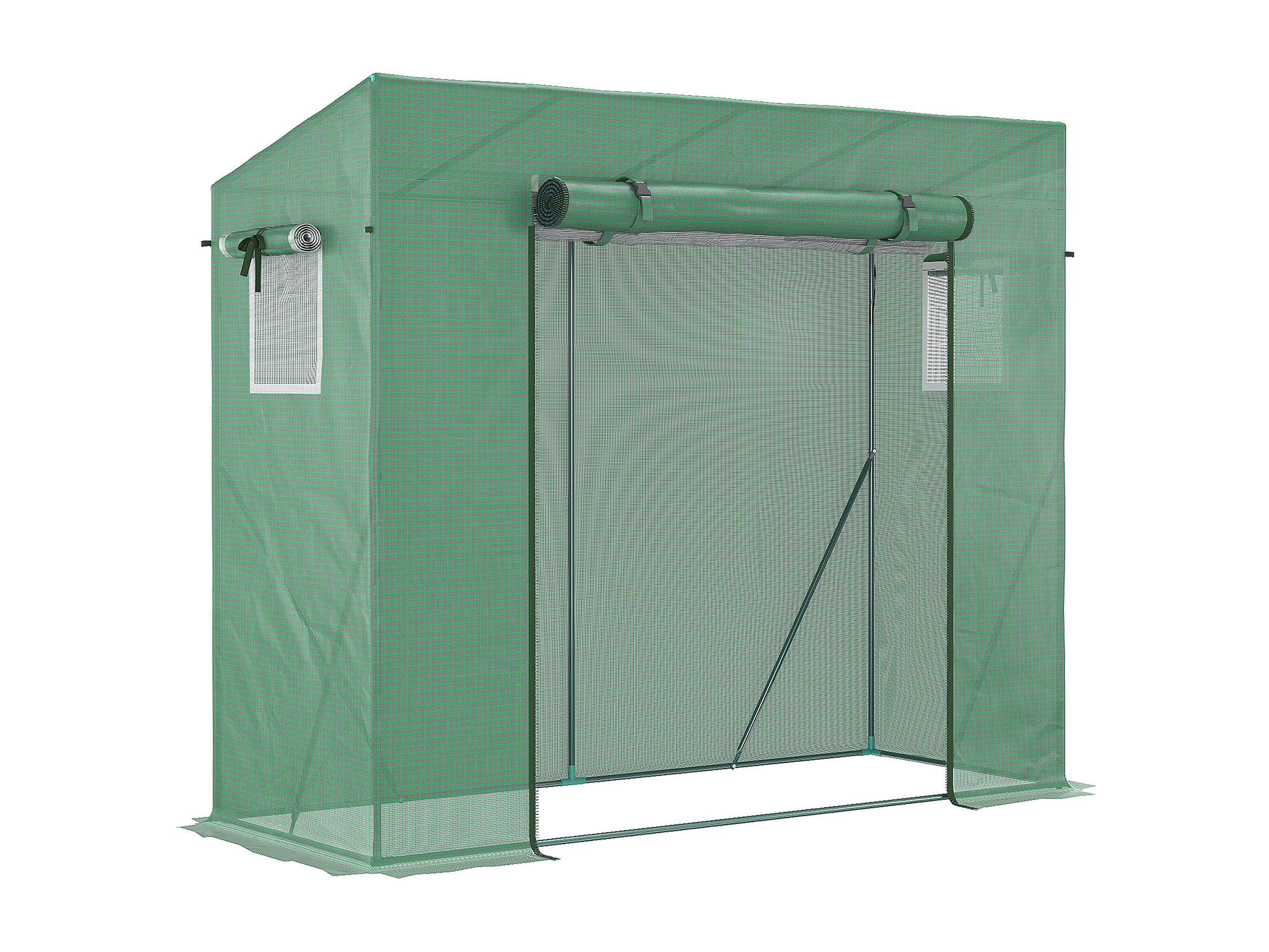Serre de jardin 6 tablettes dim. 1,4L x 0,73l x 1,9H m porte déroulante fenêtres acier PE haute densité vert