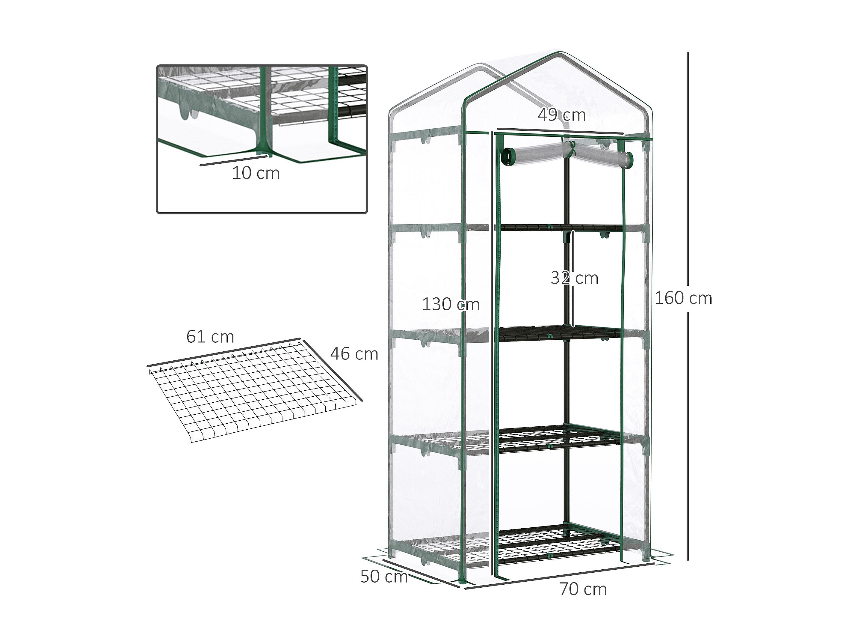 Serre de jardin balcon étagère serre 4 niveaux 0,7L x 0,5l x 1,6H m acier époxy bâche amovible PVC haute densité transparente