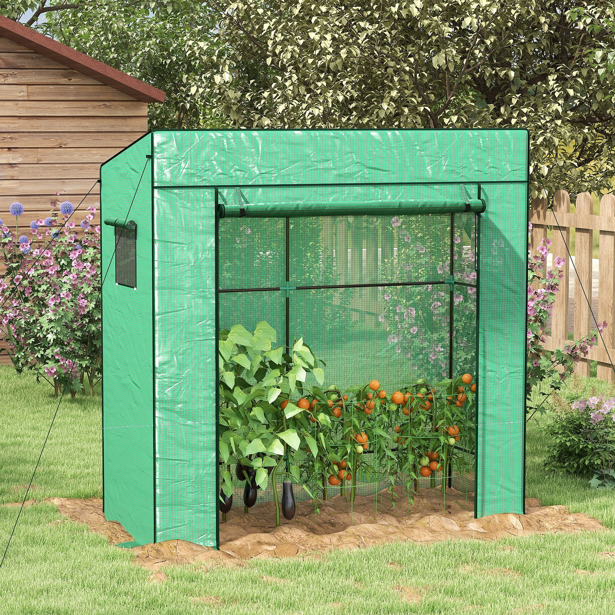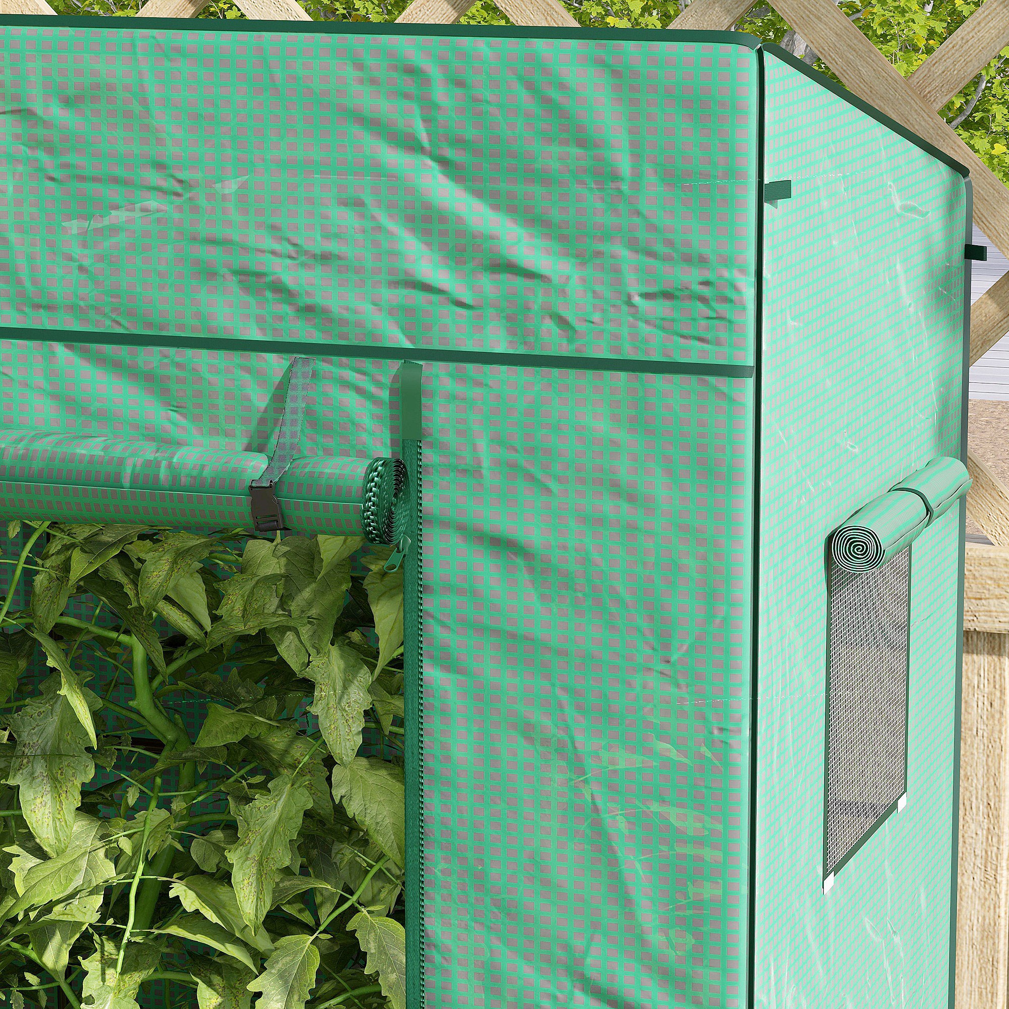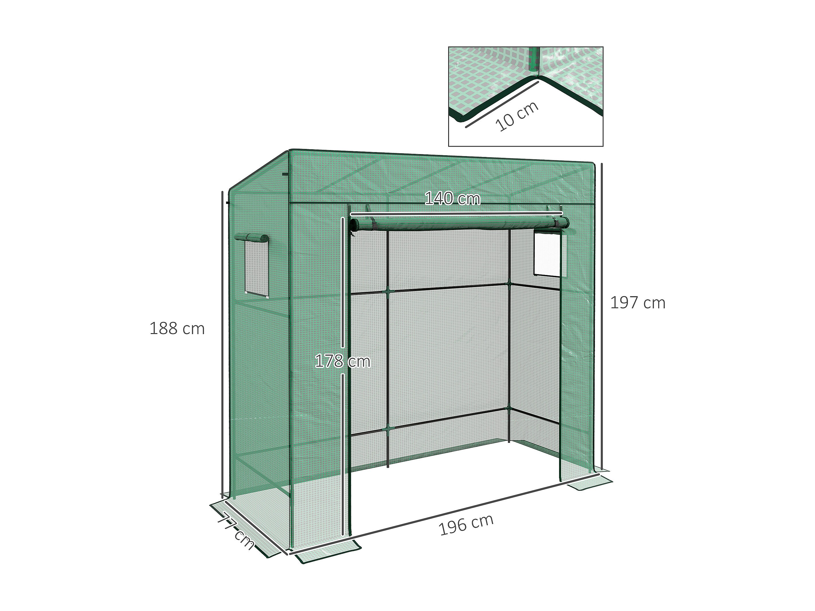 Serre de jardin 4 tablettes dim. 1,4L x 1,43l x 1,9H m porte déroulante fenêtre acier PE haute densité vert