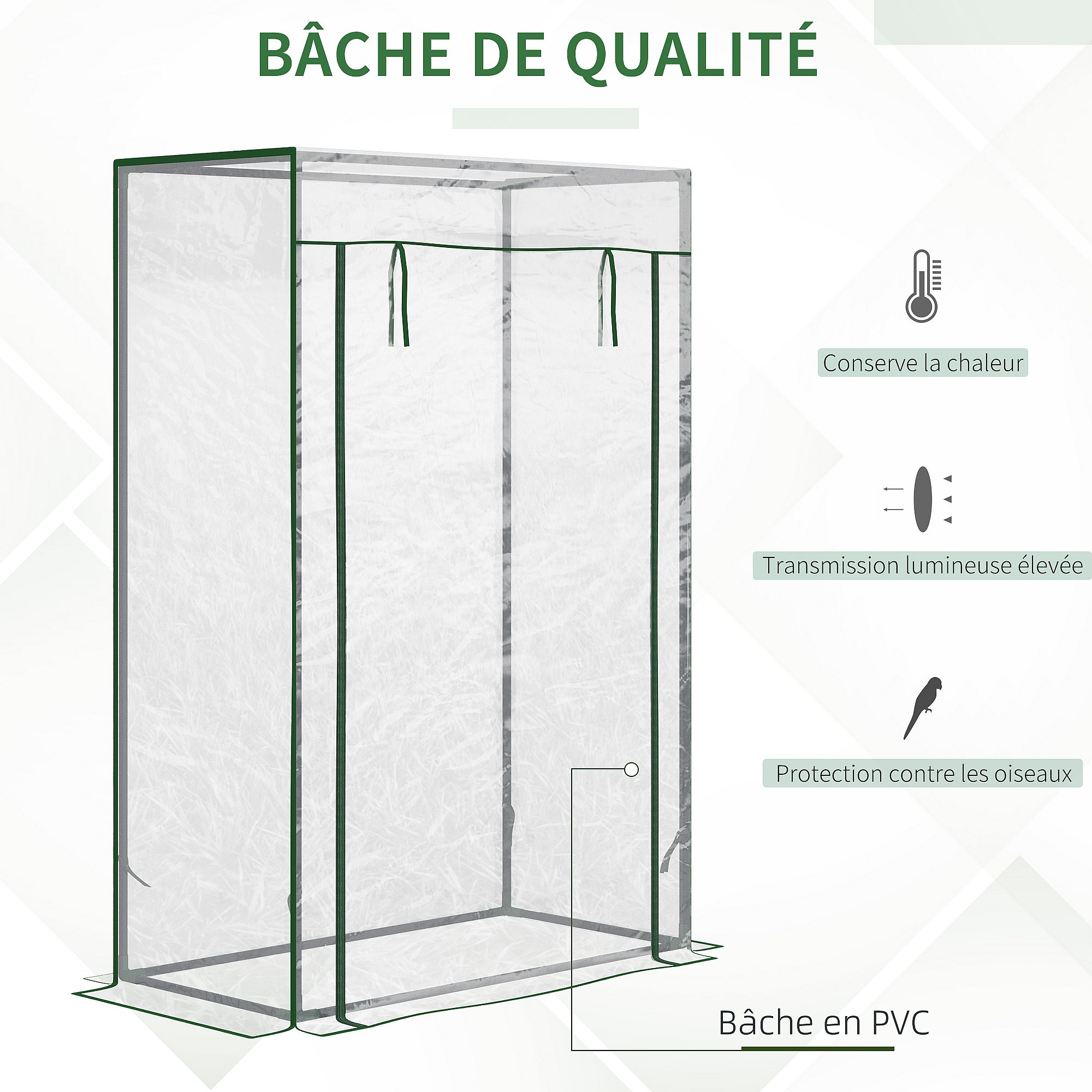 Serre de Jardin serre à tomates 1L x 0,5l x 1,5H m porte zippée déroulante acier thermolaqué PVC haute densité 140 g/m² anti-UV