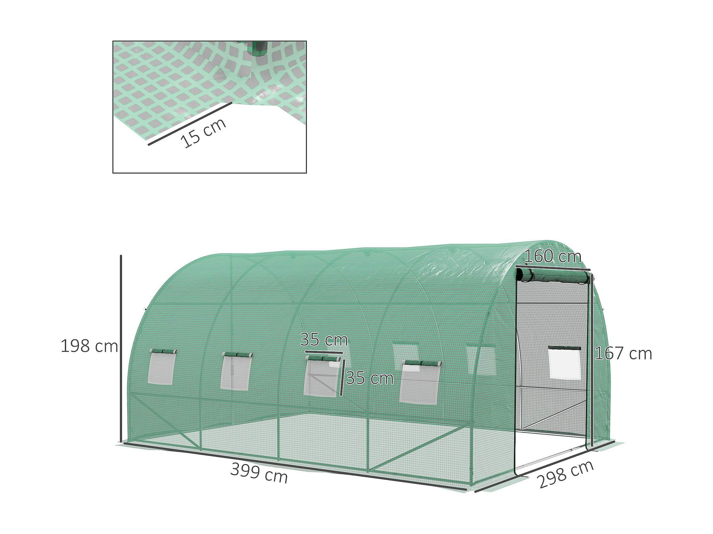 Serre de jardin tunnel 12 m² système d'arrosage intégré acier renforcé PE haute densité vert