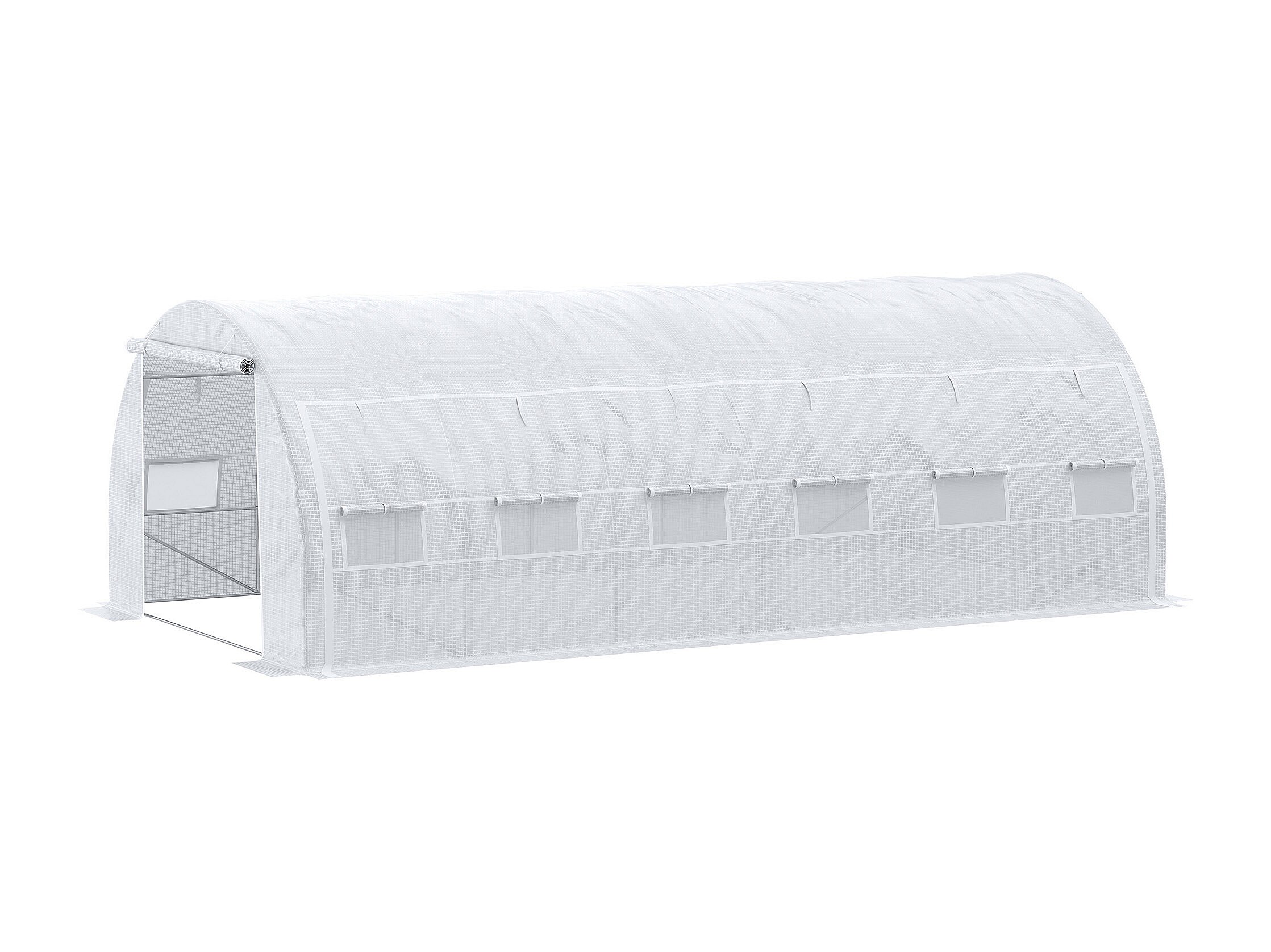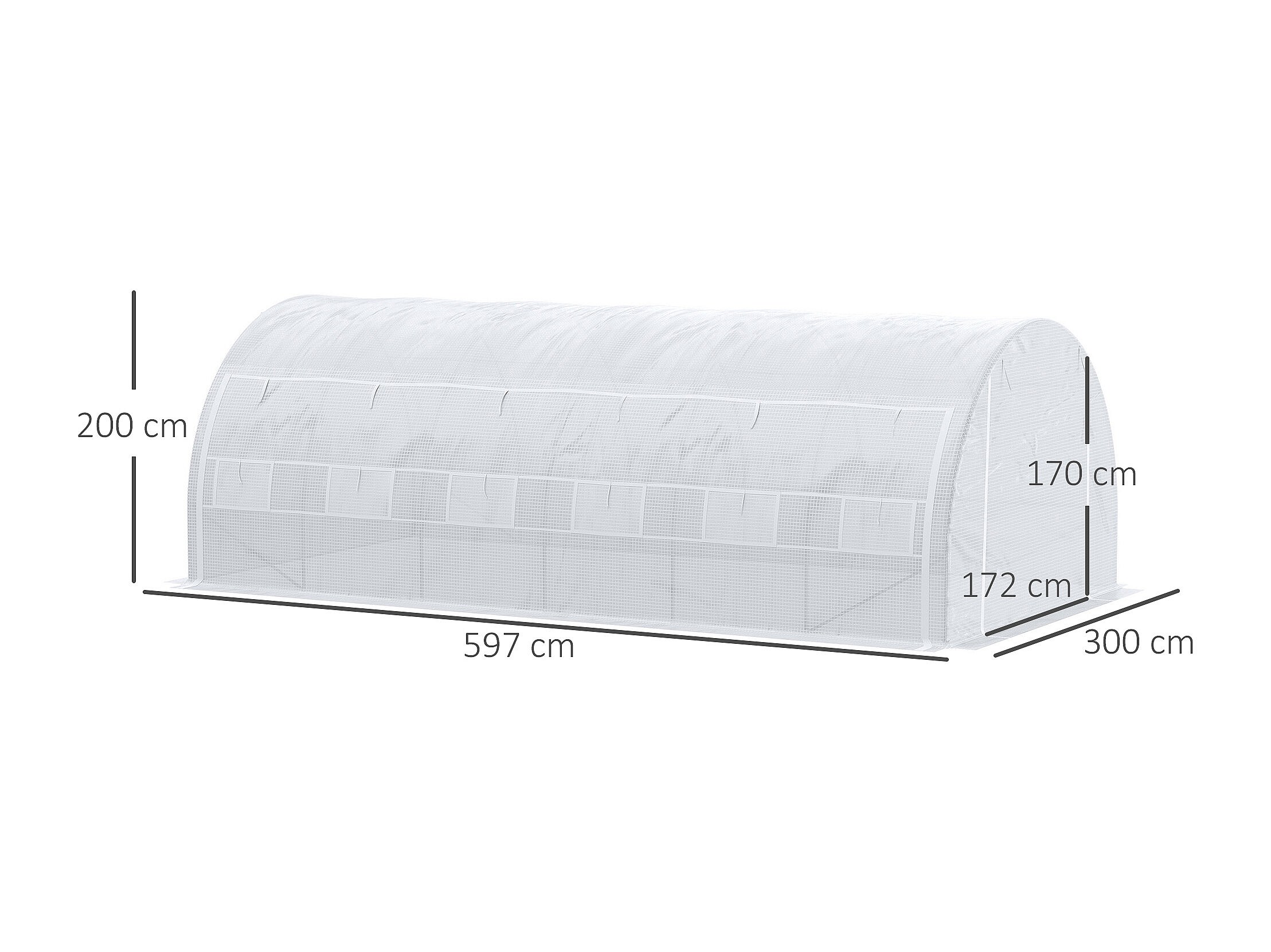 Serre de jardin tunnel 18 m² dim. 5,97L x 3,02l x 2H m - 12 fenêtres, porte zippée enroulable - châssis tubulaire acier galvanisé, bâche PE haute densité blanc