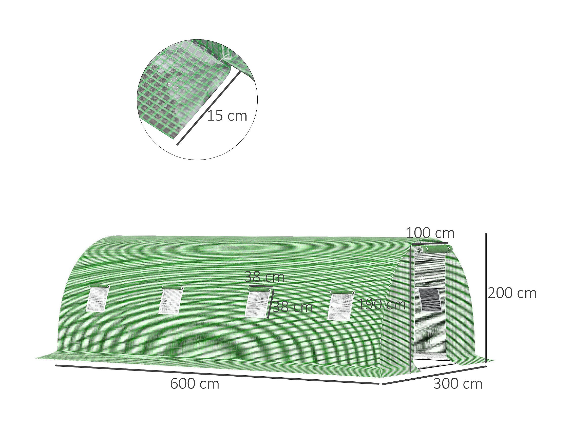 Serre tunnel de jardin grande taille dim. 3,47L x 3l x 2H m - 6 fenêtres et porte zippée enroulable - acier galvanisé PE haute densité vert