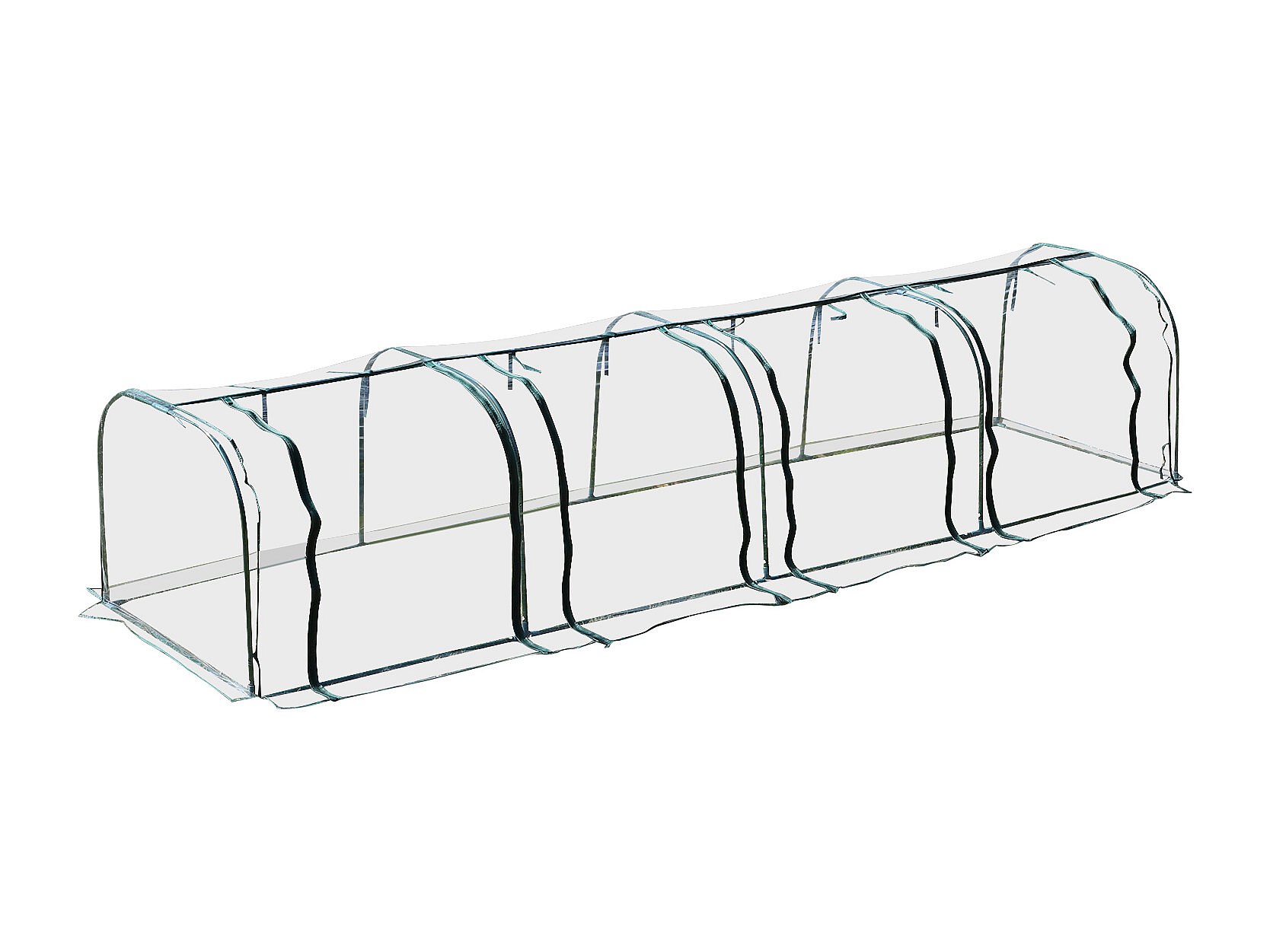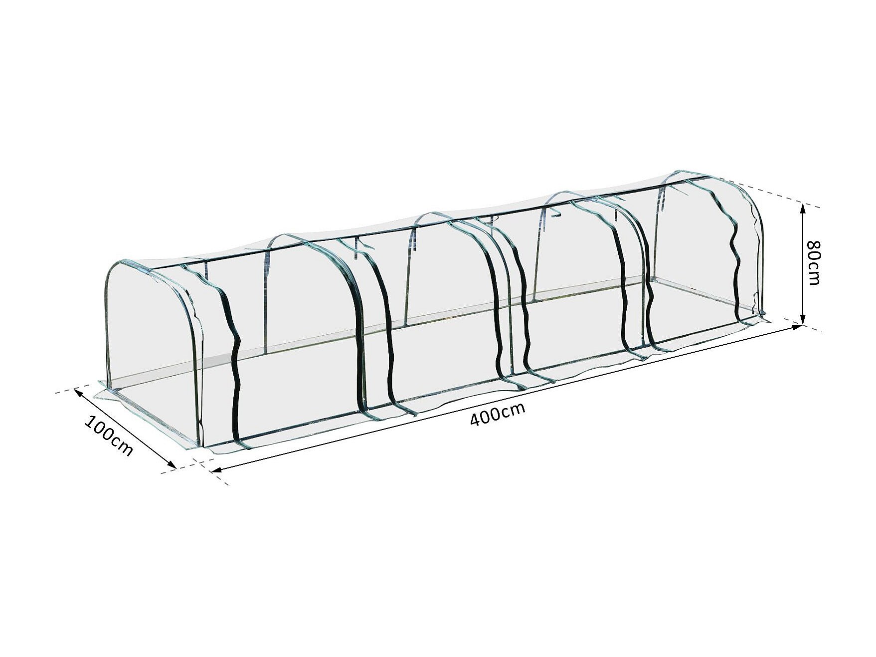 Serre de jardin tunnel 3,95L x 1l x 0,8H m 4 portes zippées bâche PVC transparent acier thermolaqué vert