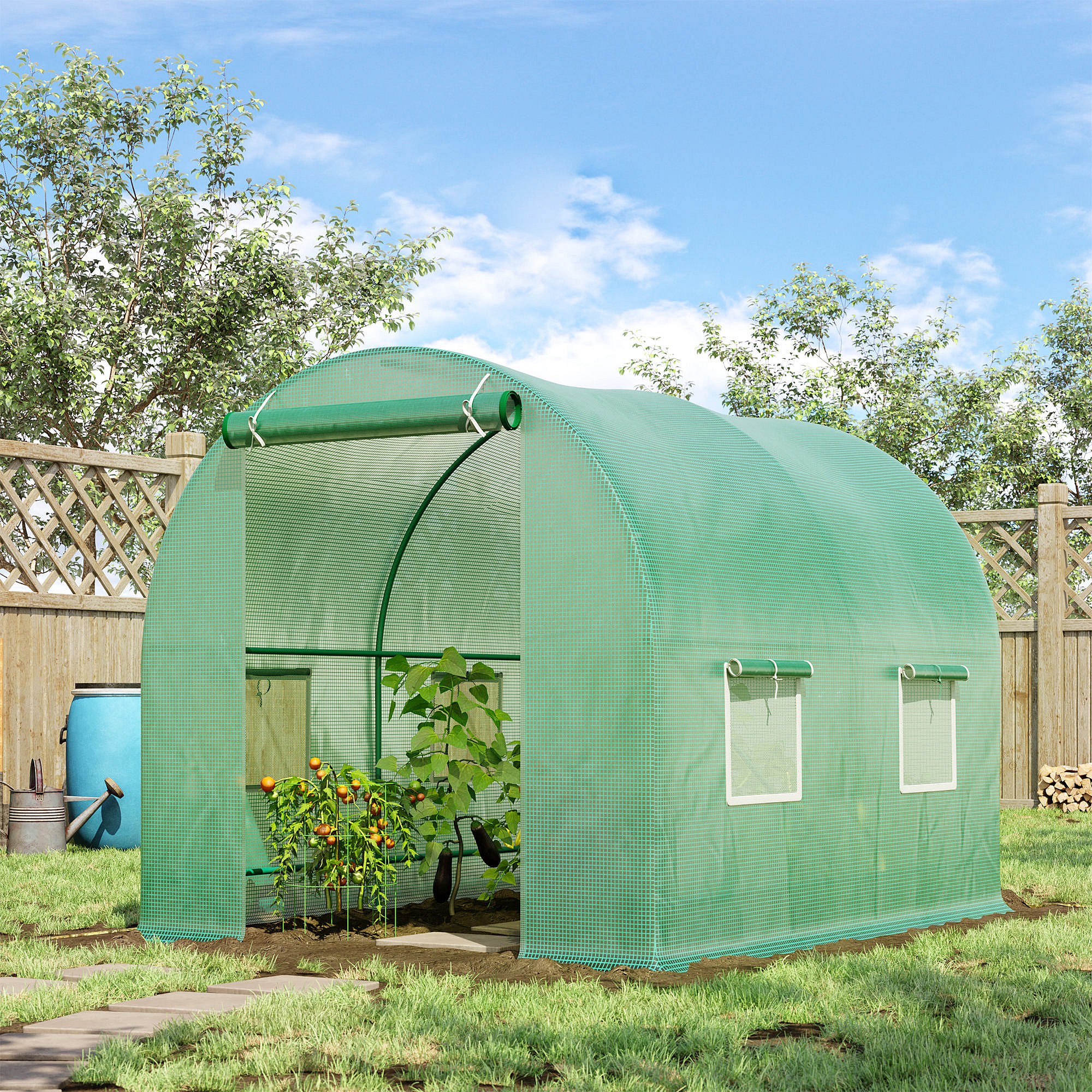 Serre tunnel de jardin grande taille dim. 3,47L x 3l x 2H m - 6 fenêtres et porte zippée enroulable - acier galvanisé PE haute densité vert
