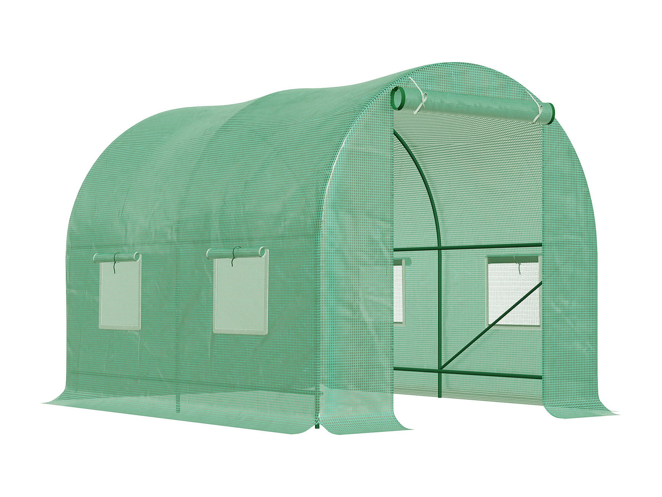 Serre de jardin tunnel 5 m² 2,45L x 2l x 1,98H m acier renforcé Ø 1,8 cm + PE haute densité 140 g/m² fenêtres porte déroulante vert