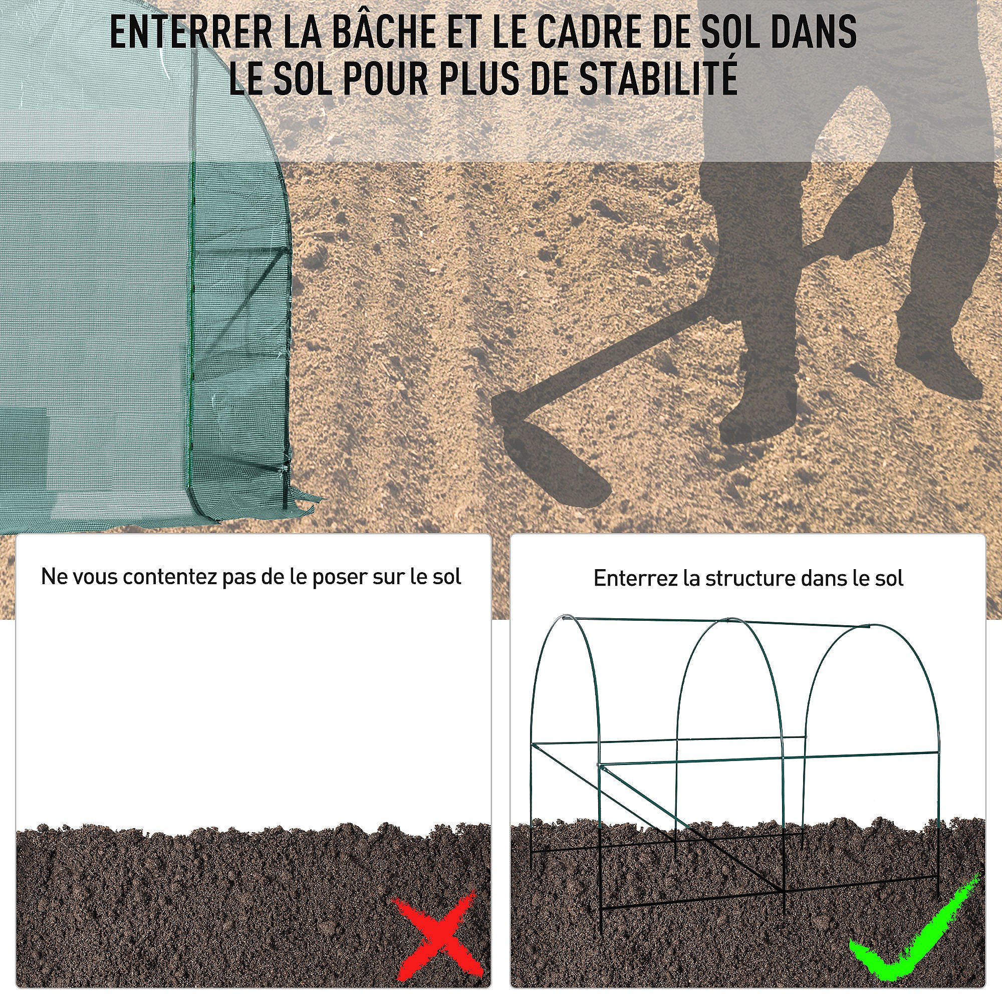 Serre de jardin tunnel surface sol 6 m² châssis tubulaire renforcé vert