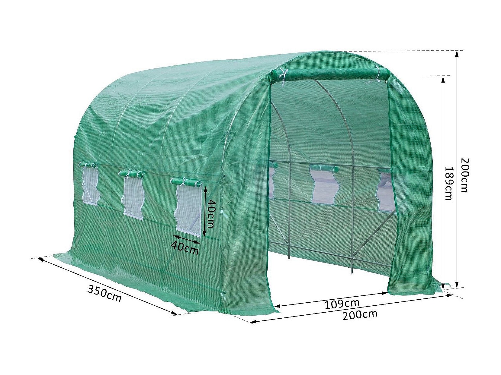 Serre tunnel de jardin 3,5 x 3 x 2 m grande taille 6 fenêtres vert