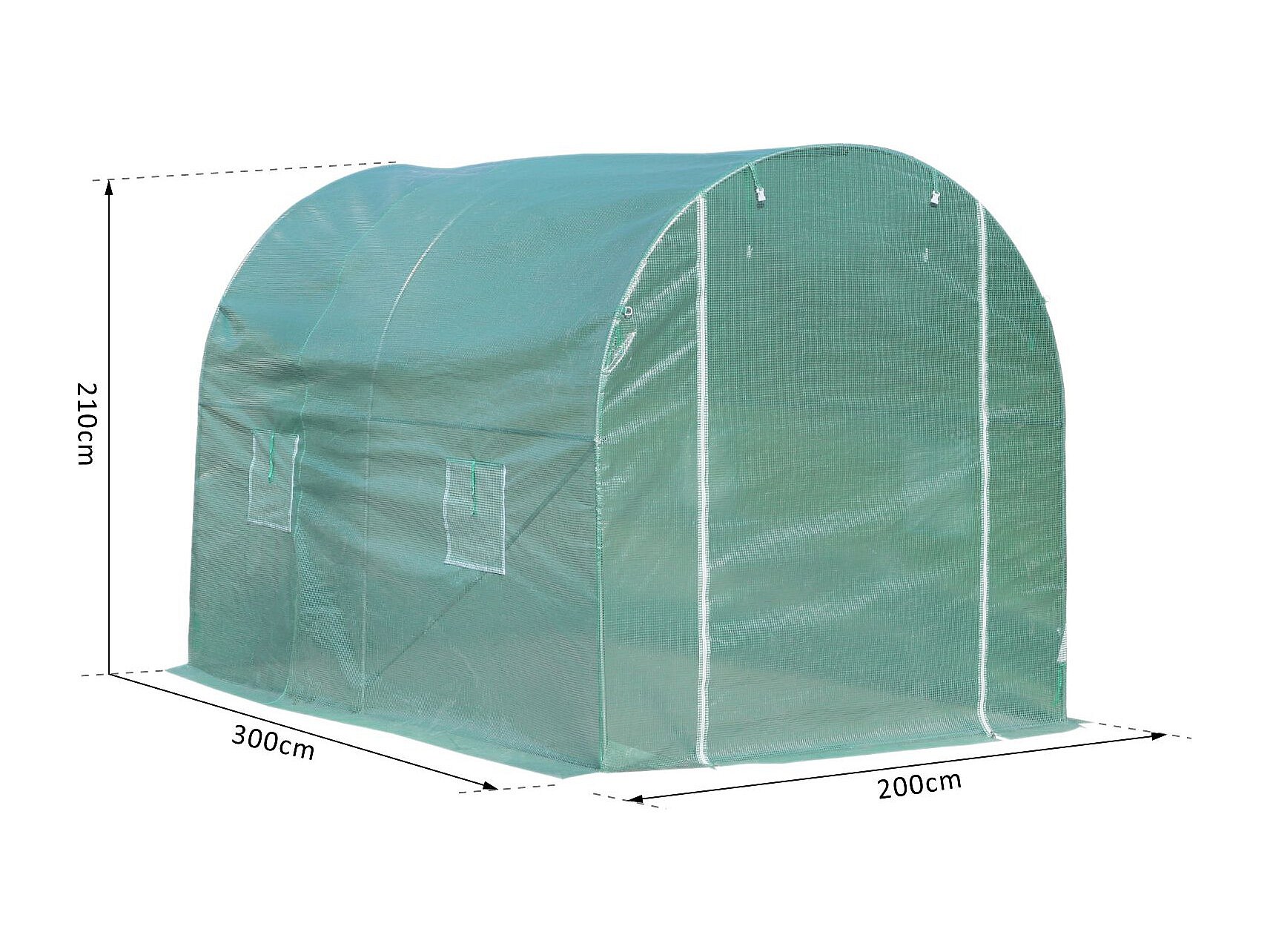 Serre de jardin tunnel surface sol 6 m² 3L x 2l x 2,10H m châssis tubulaire renforcé porte zippée 4 fenêtres enroulables vert