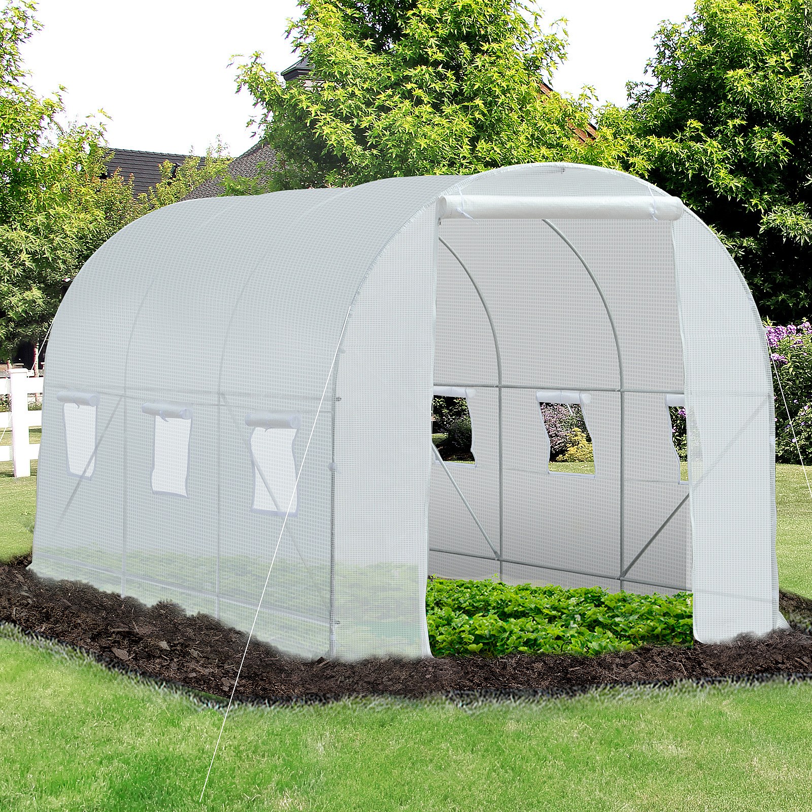 Serre tunnel de jardin 3,5 x 3 x 2 m grande taille 6 fenêtres blanc