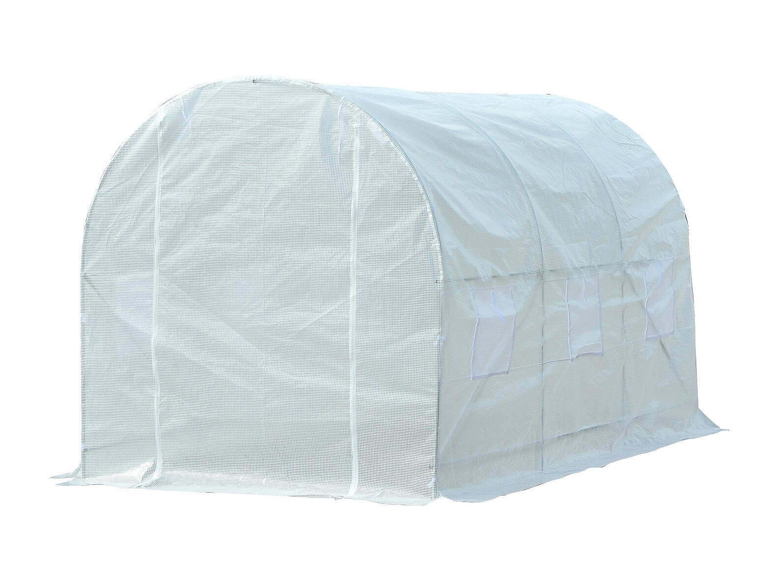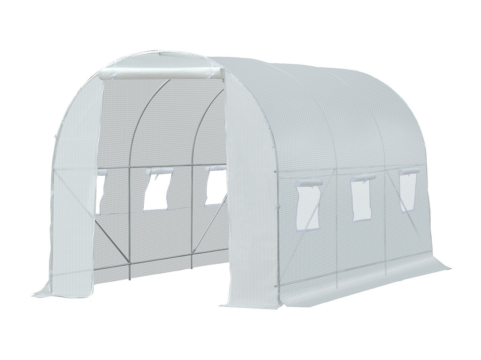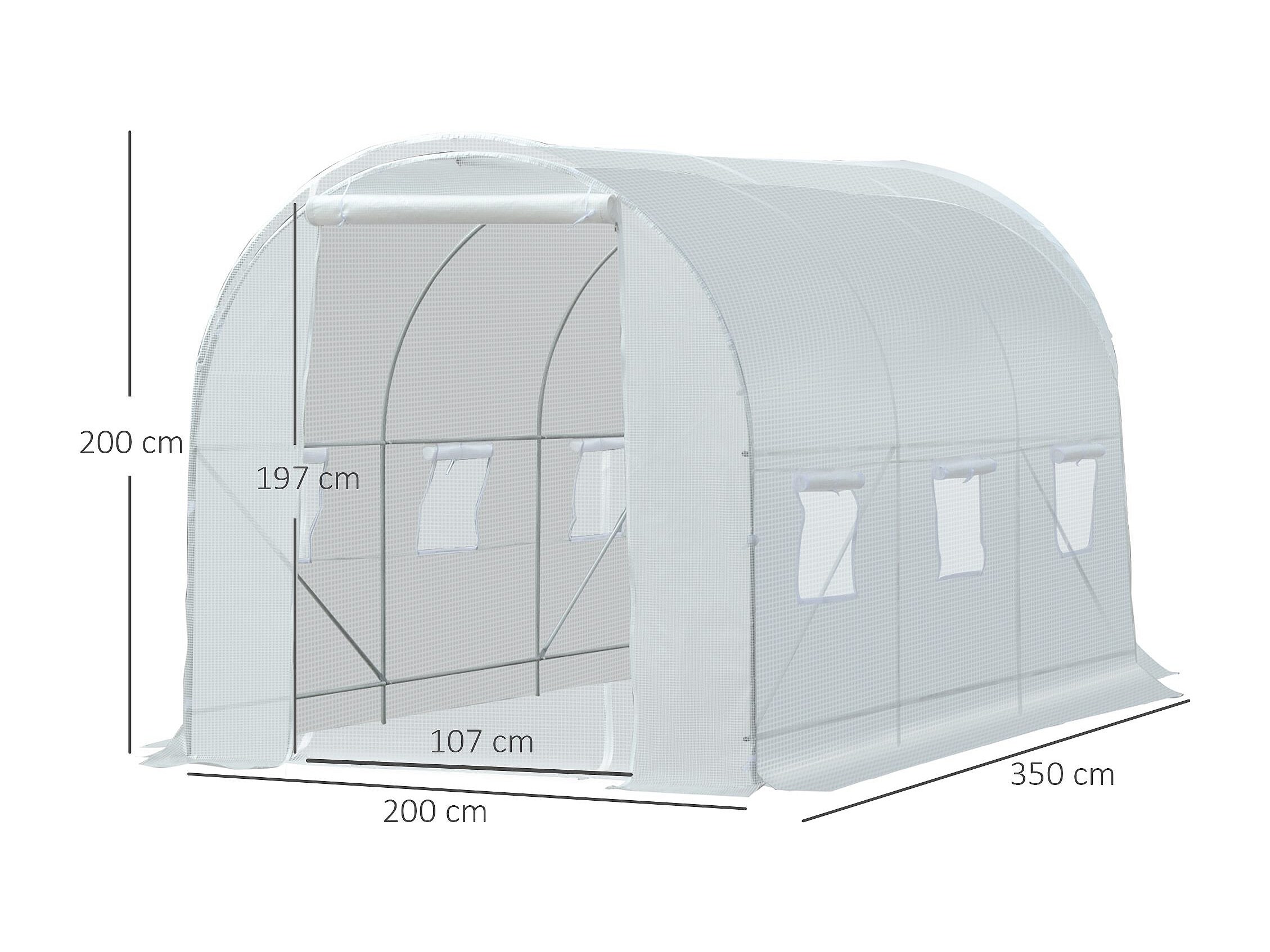 Serre tunnel de jardin dim. 3,5L x 3l x 2H m porte + 6 fenêtres enroulables acier galvanisé bâche PE haute densité blanc