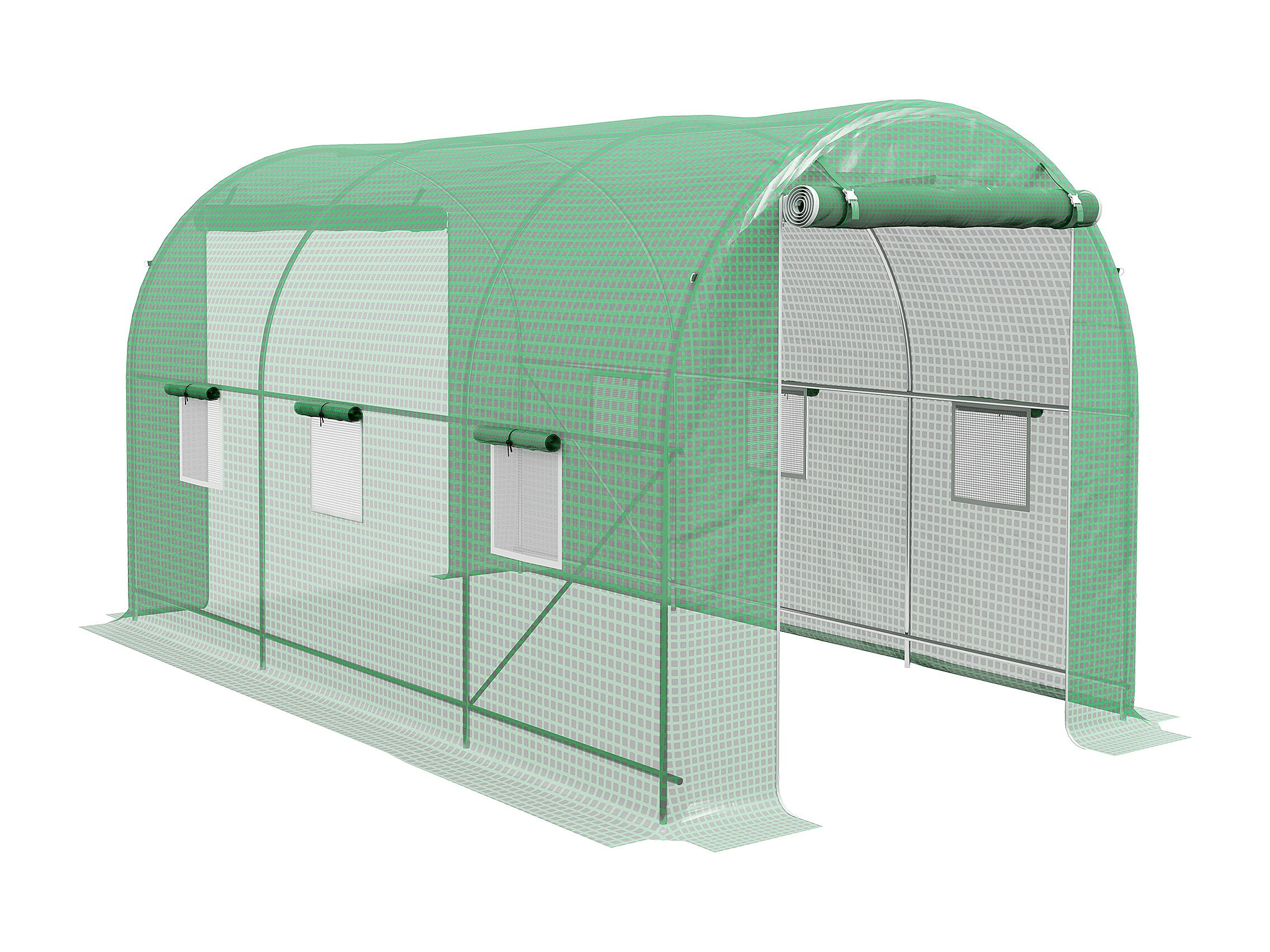 Serre tunnel de jardin grande taille dim. 3,47L x 3l x 2H m - 6 fenêtres et porte zippée enroulable - acier galvanisé PE haute densité vert