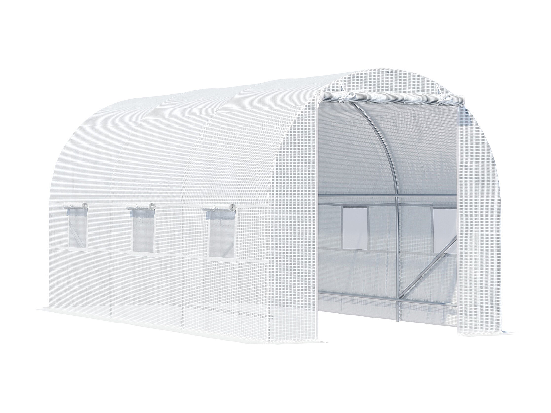 Serre tunnel de jardin dim. 3,5L x 3l x 2H m porte + 6 fenêtres enroulables acier galvanisé bâche PE haute densité blanc