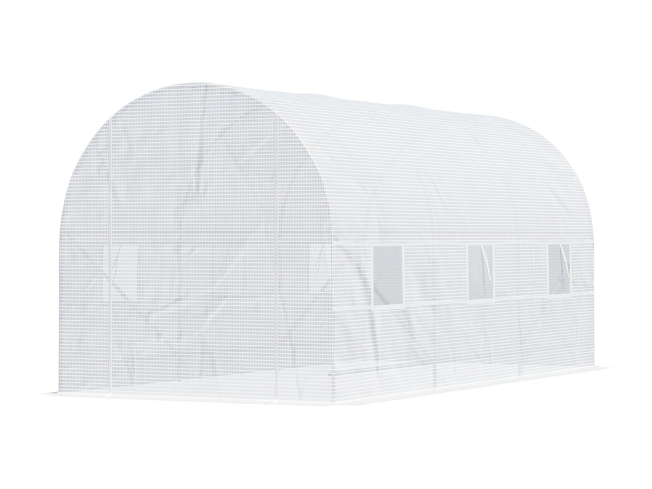 Serre de jardin tunnel surface sol 18 m² 6L x 3l x 2H m châssis tubulaire renforcé 24 mm 8 fenêtres blanc