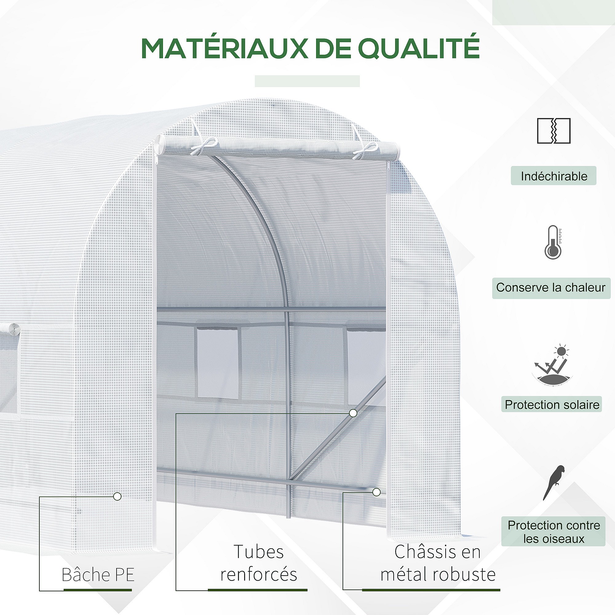 Serre de jardin tunnel surface sol 7 m² 3,5L x 2l x 2H m châssis tubulaire renforcé 18 mm 6 fenêtres blanc