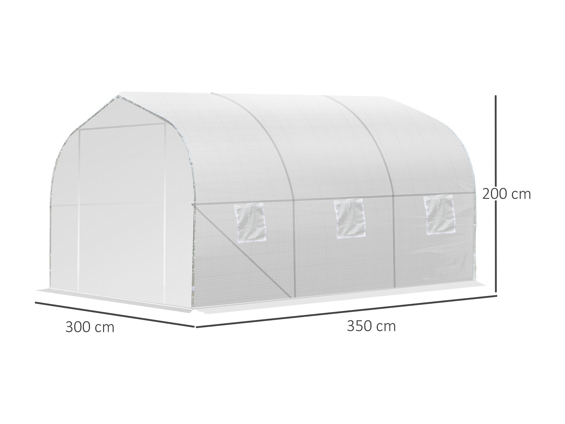 Serre tunnel de jardin 3,5 x 3 x 2 m grande taille 6 fenêtres blanc