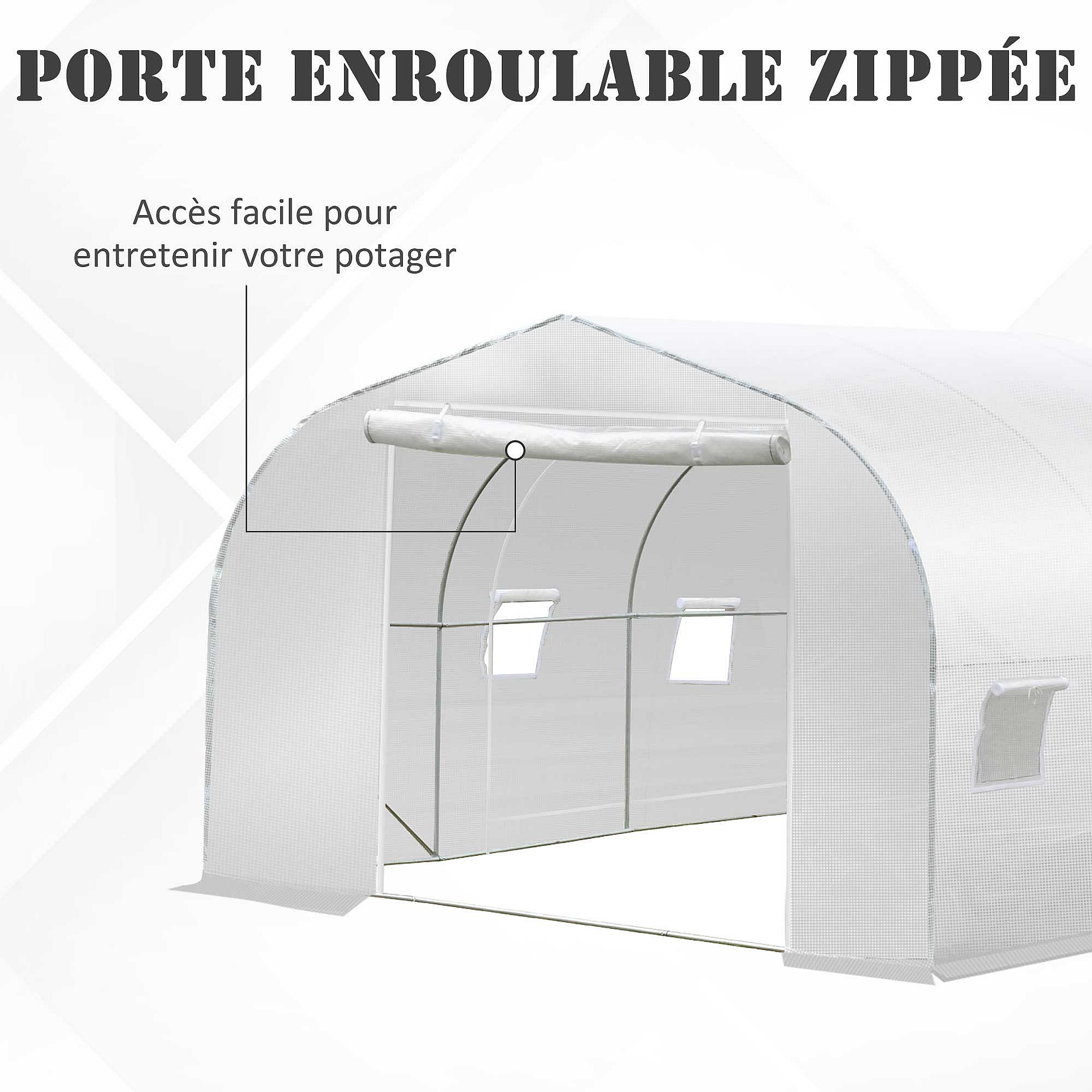 Serre tunnel de jardin dim. 3,5L x 3l x 2H m porte + 6 fenêtres enroulables acier galvanisé bâche PE haute densité blanc