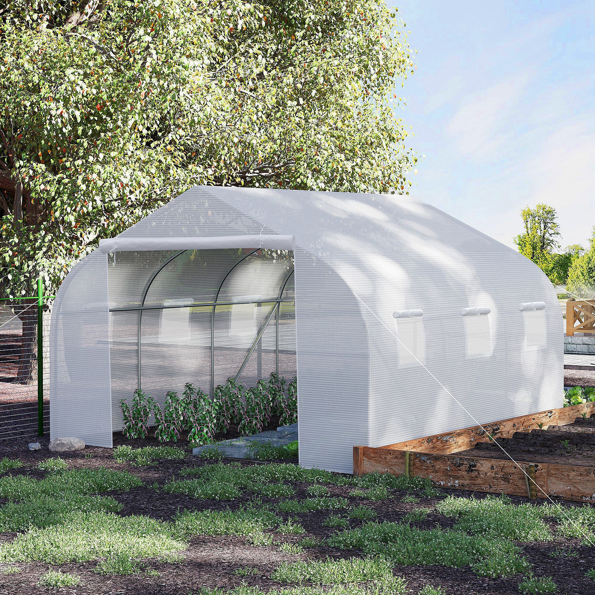 Serre tunnel de jardin 3,5 x 3 x 2 m grande taille 6 fenêtres blanc