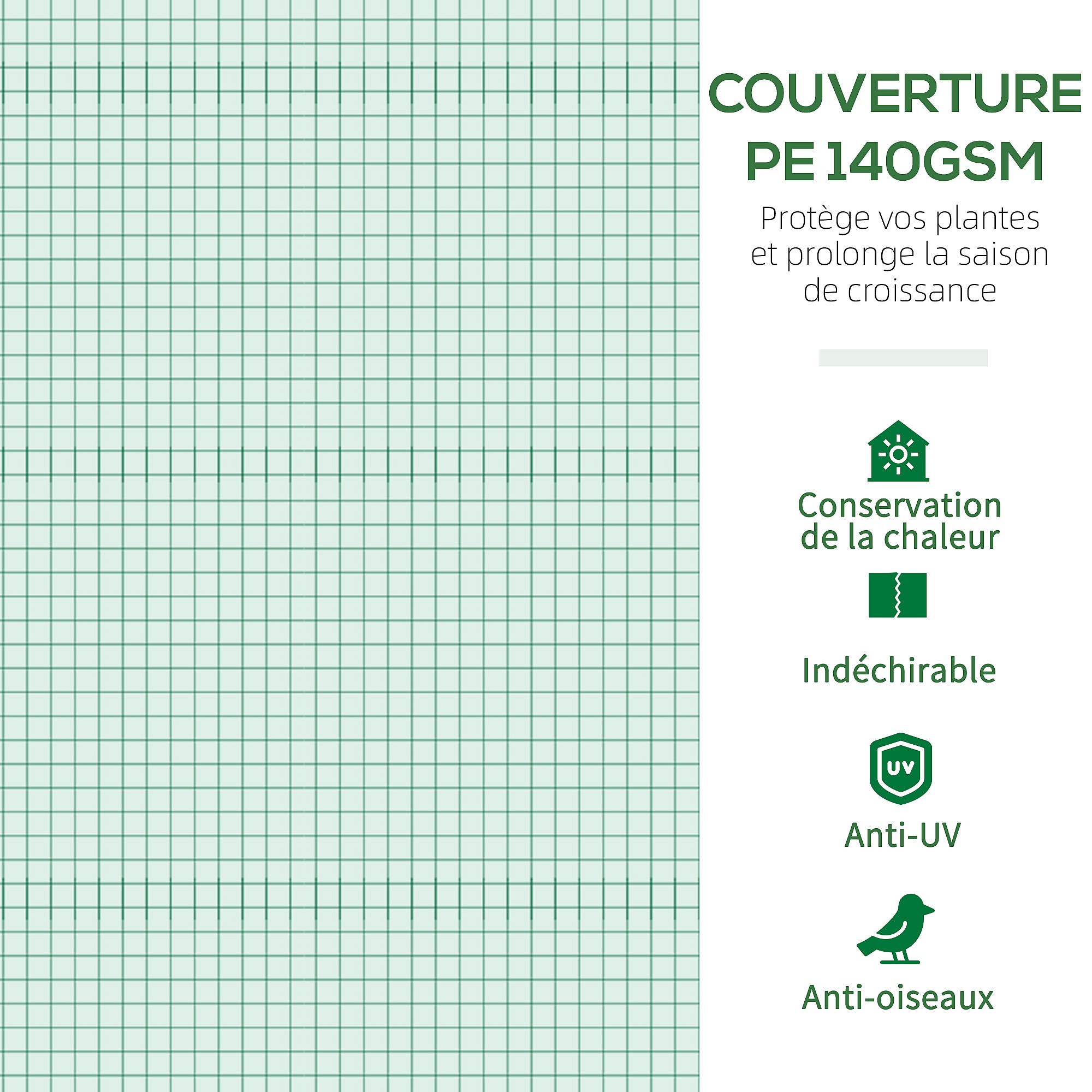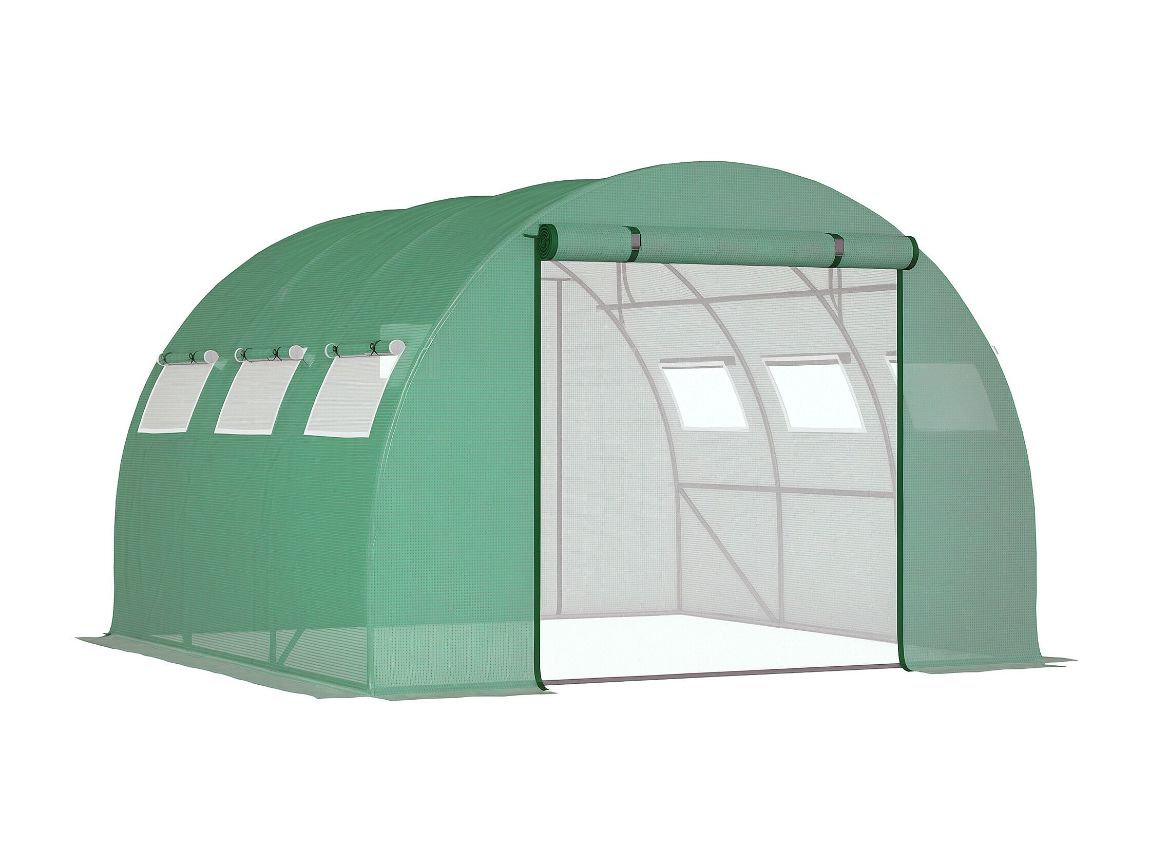Serre de jardin tunnel acier galvanisé renforcé diamètre 2,4 cm + PE haute densité fenêtres porte vert