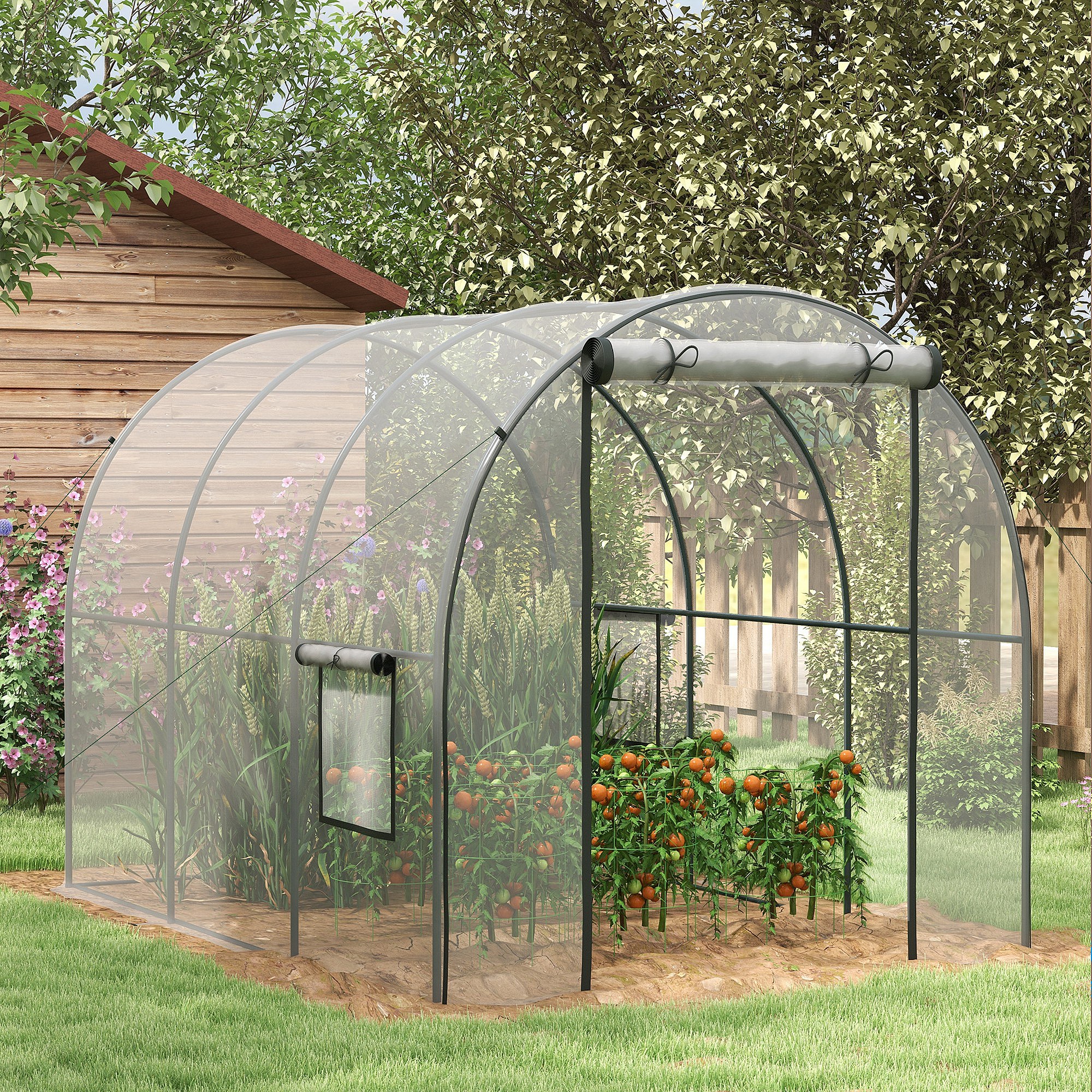 Serre tunnel de jardin 2x3m en aluminium stable Serre ancrage au sol avec porte et fenêtres enroulables pour jardin
