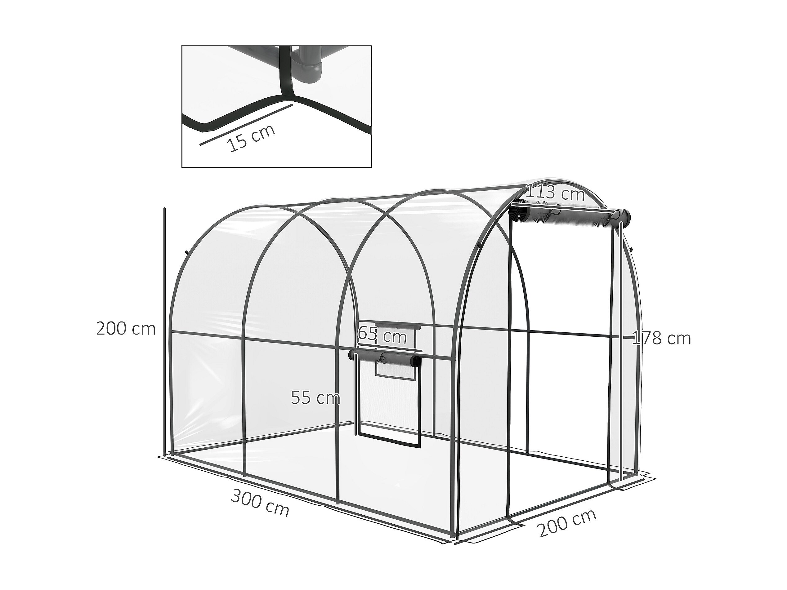 Serre tunnel de jardin 3,5 x 3 x 2 m grande taille 6 fenêtres blanc