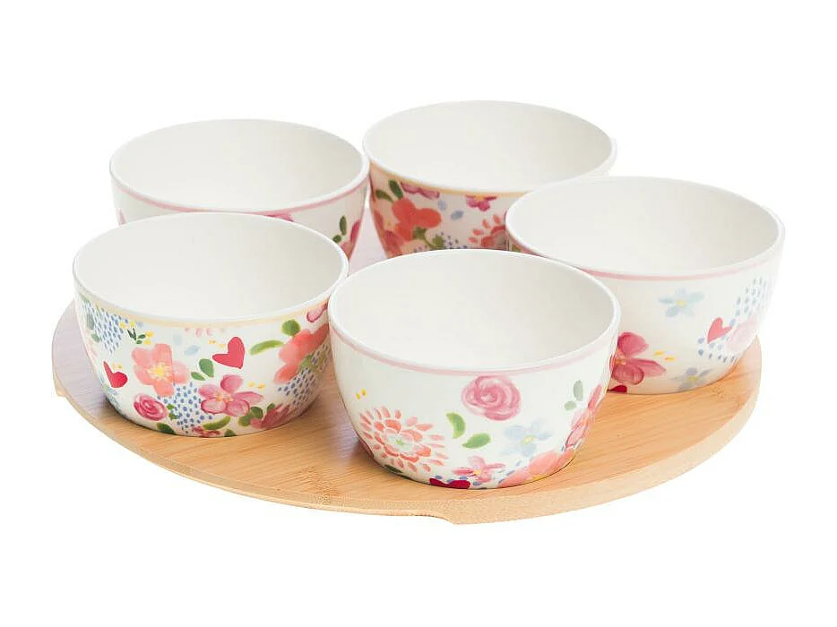Set Plateau en Bois avec 3 Bols Lacor - Idéal pour Apéritifs et Présentation de Condiments