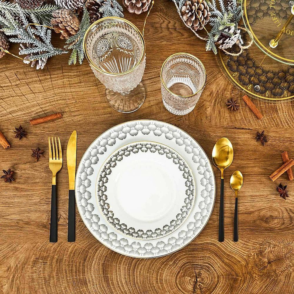 Service 12 Pieces Porcelaine Ginko Blanc, Noir, Or