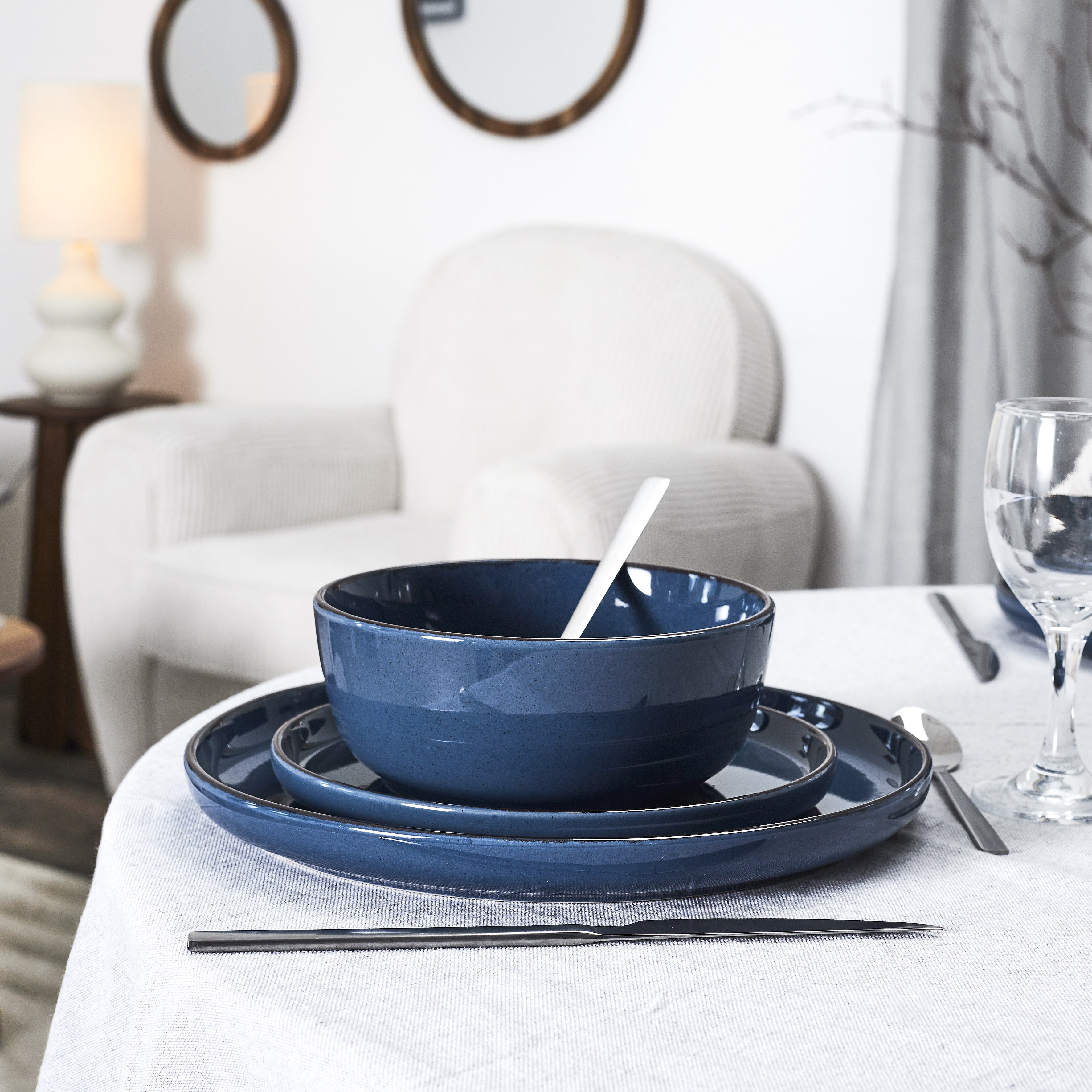 Service Vaisselle 12pcs Gres Du Temps Bleu Bleu
