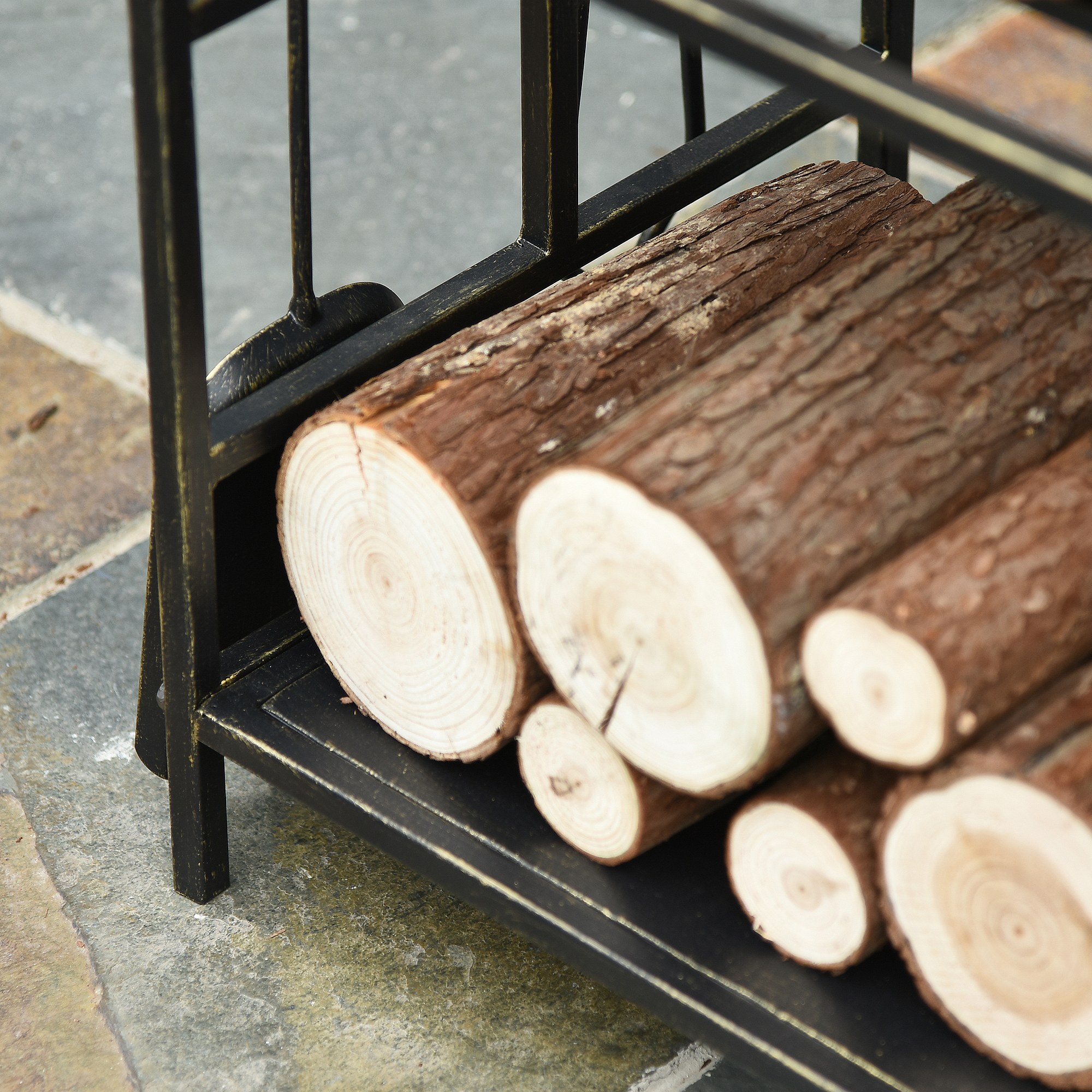 Serviteur de cheminée - porte bûches - range bûches multi accessoires étagère 46L x 30l x 76H cm acier noir