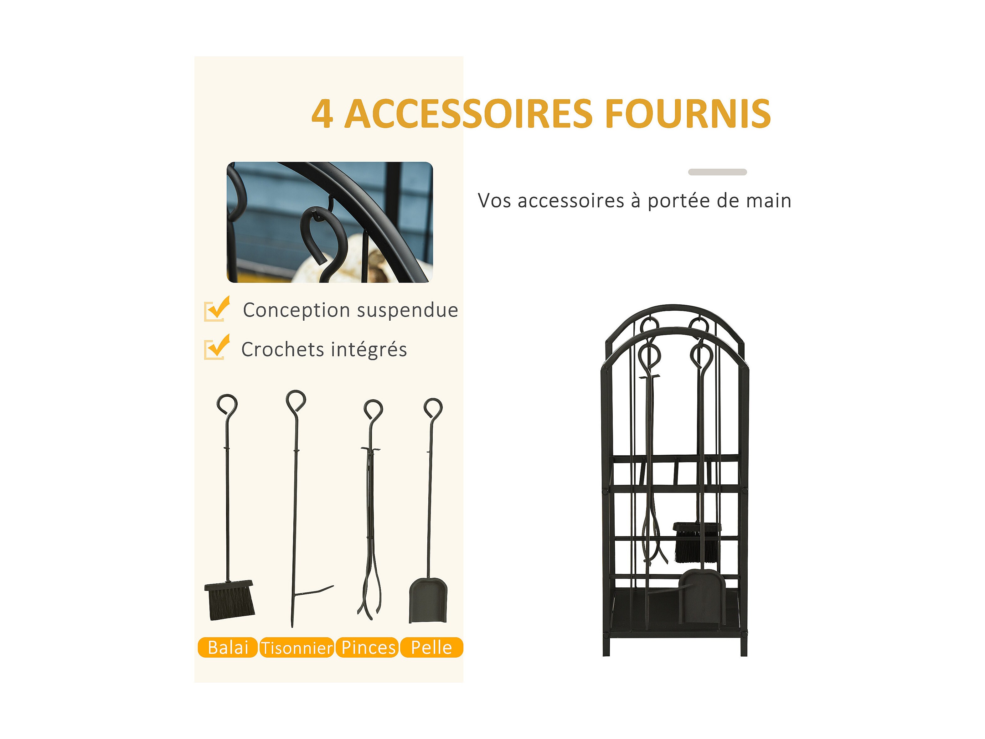 Serviteur de cheminée - porte bûches - range bûches multi accessoires étagère 46L x 30l x 76H cm acier noir